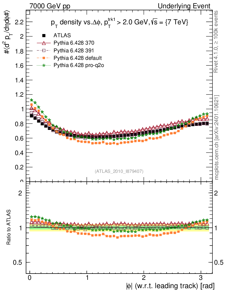 Underlying Event : Δφ distributions : <pT> vs Δφ