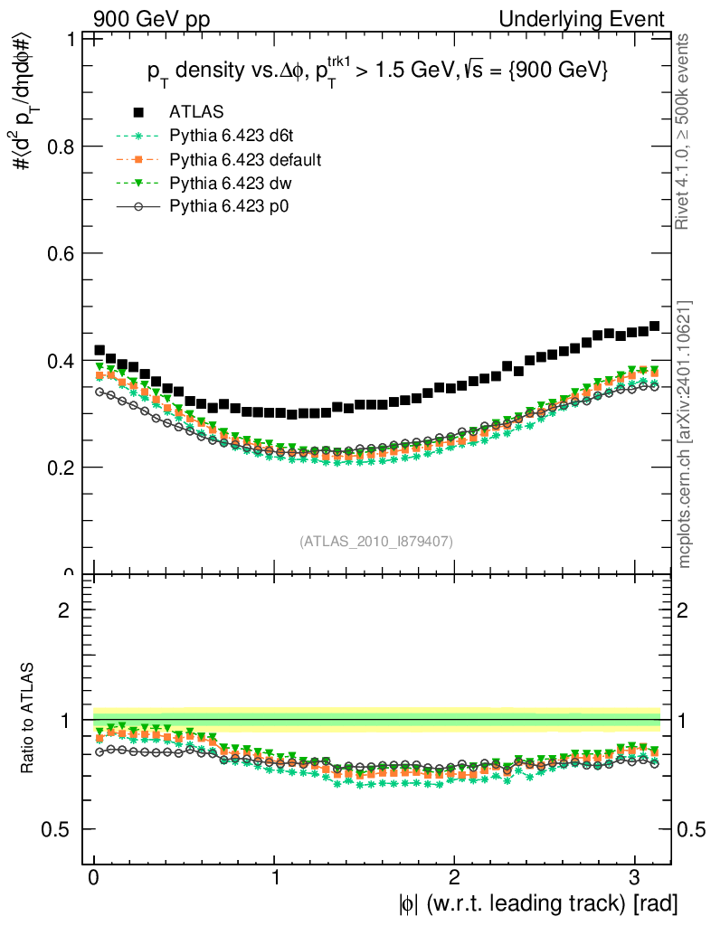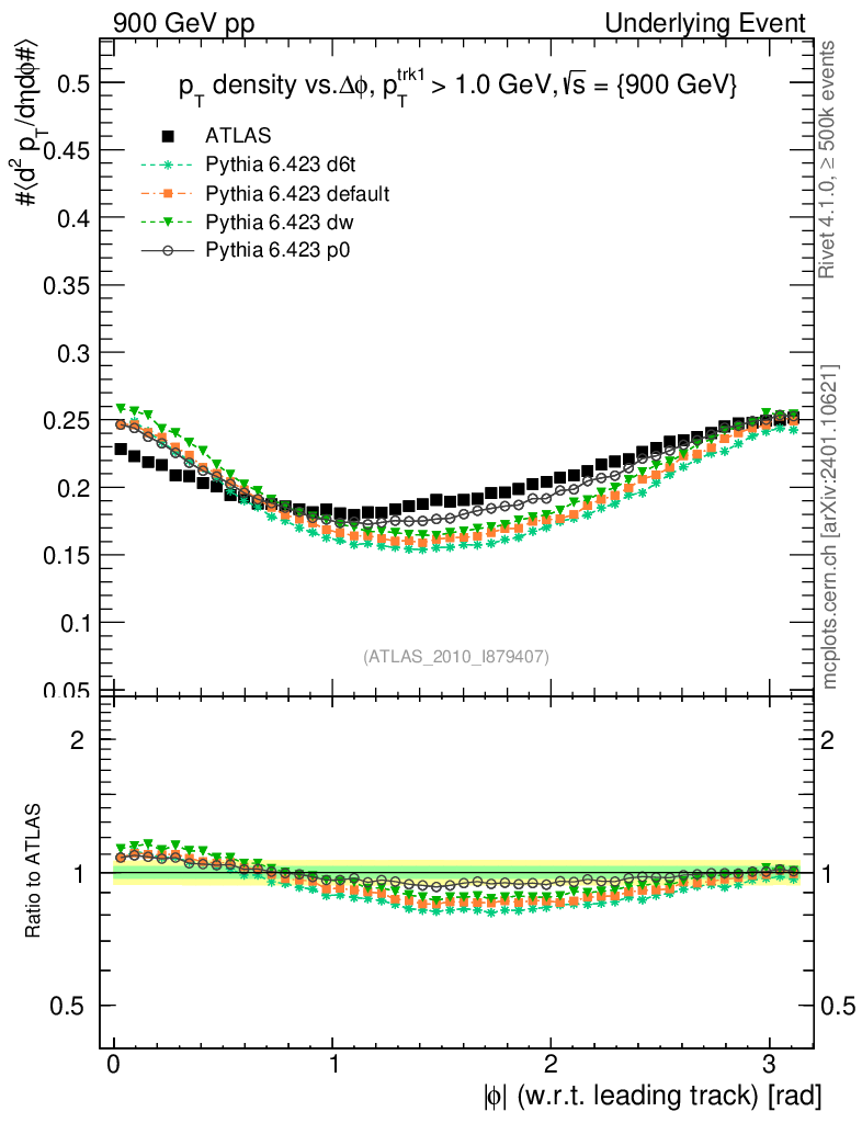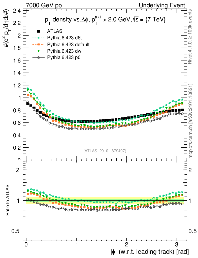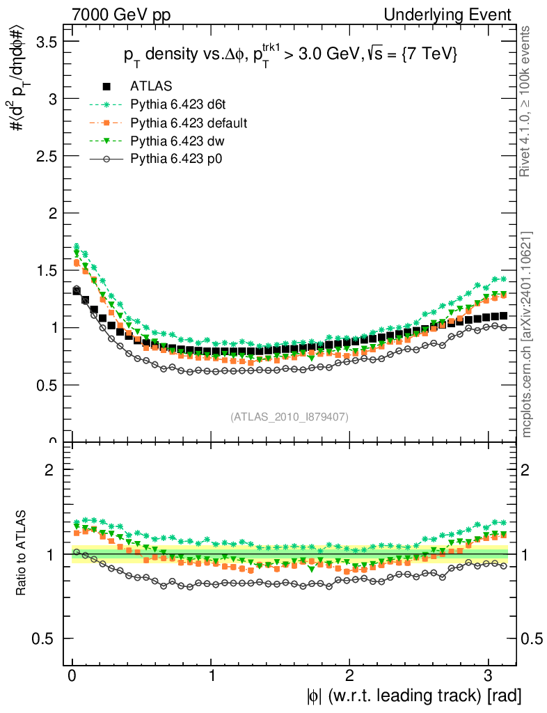 Underlying Event : Δφ distributions : <pT> vs Δφ
