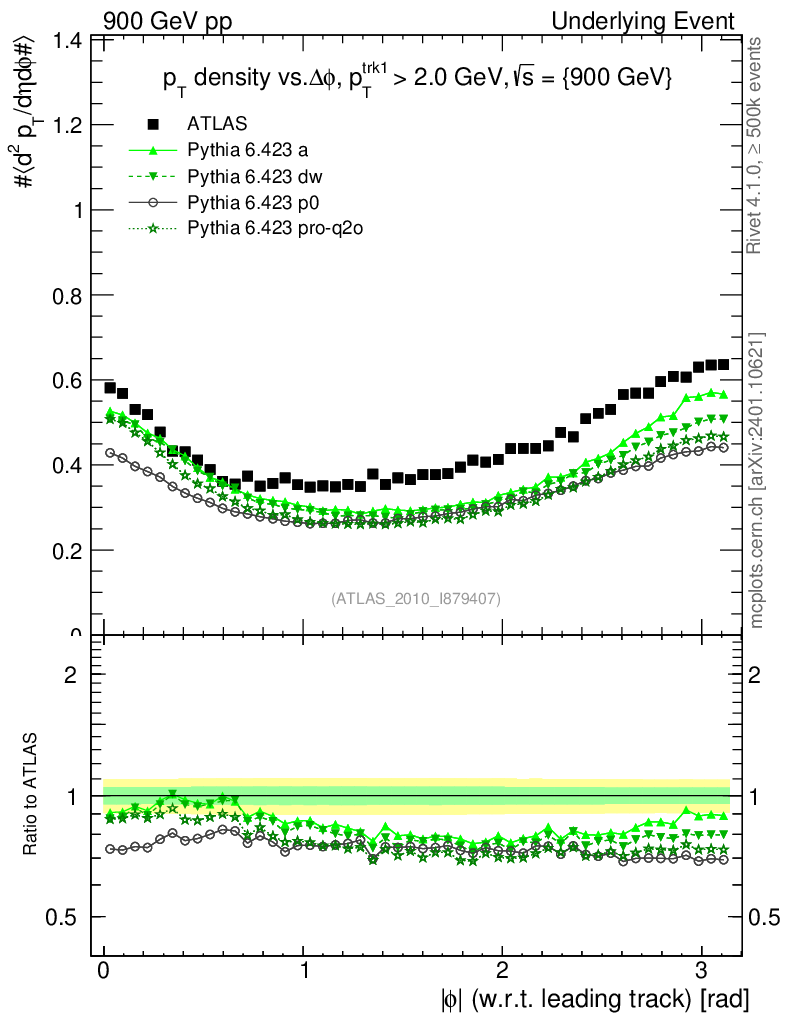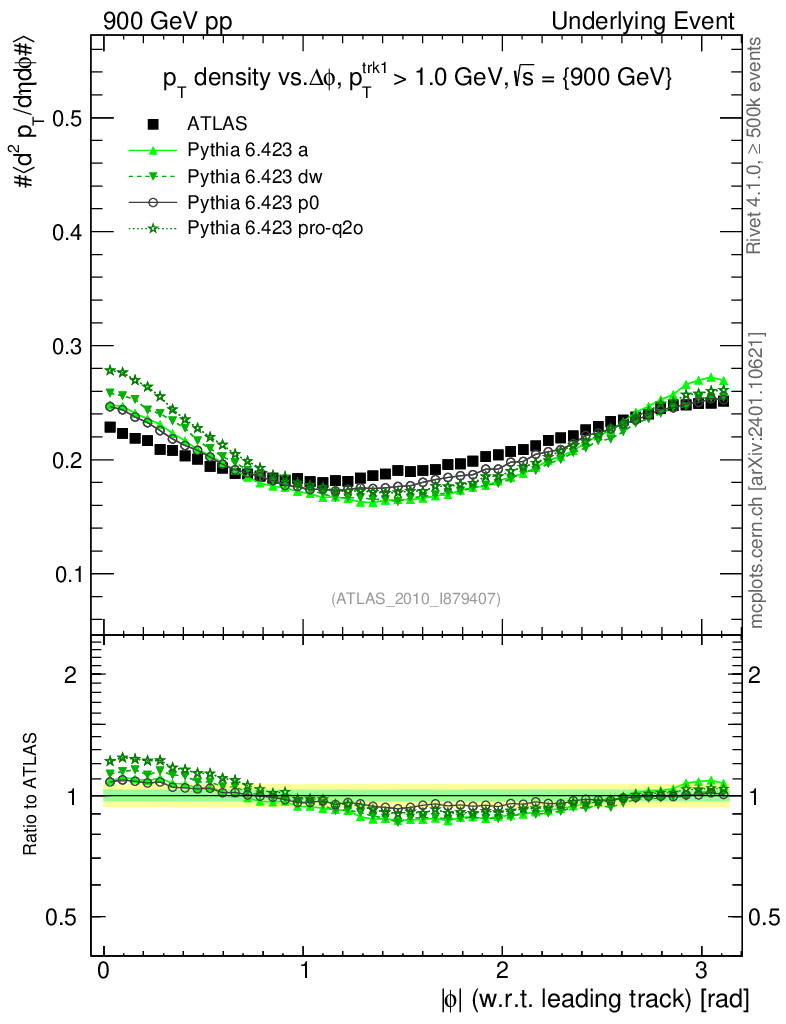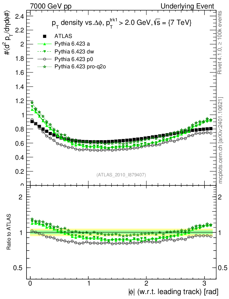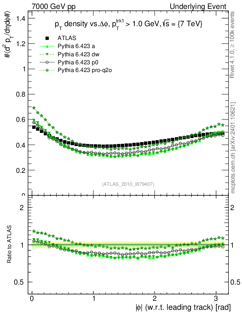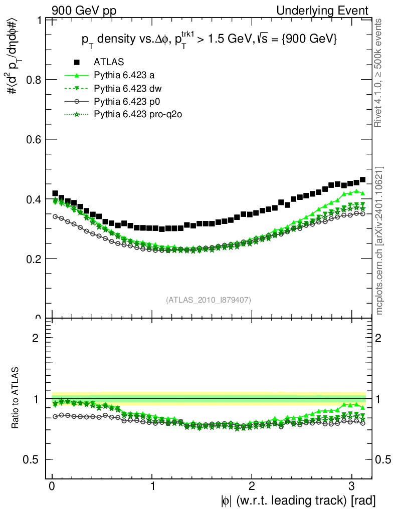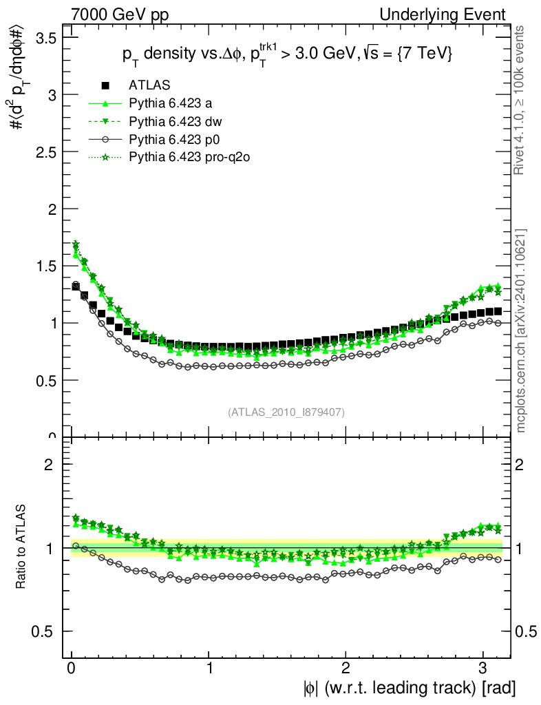 Underlying Event : Δφ distributions : <pT> vs Δφ