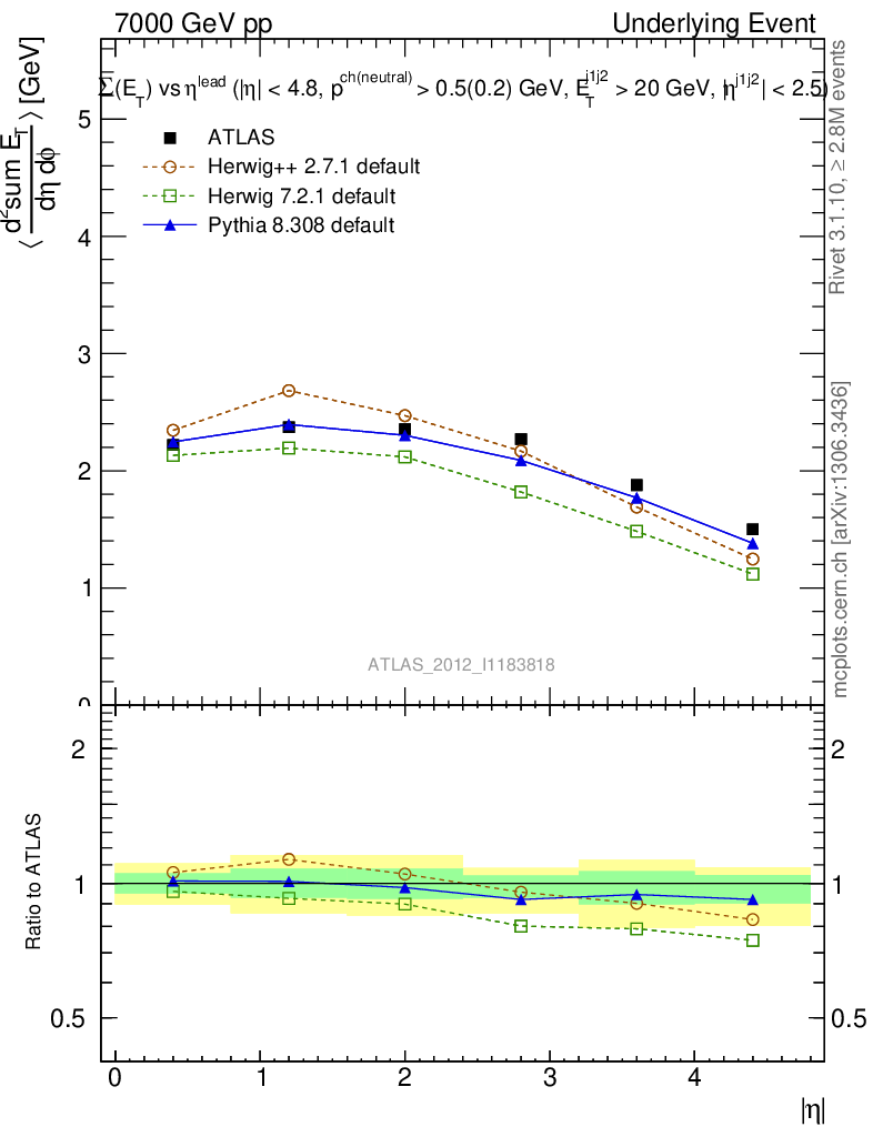 Underlying Event : Transverse : Σ(ET) vs η