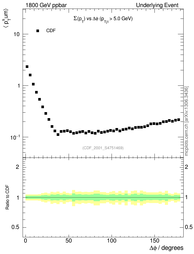 Underlying Event : Δφ distributions : Σ(pT) vs Δφ