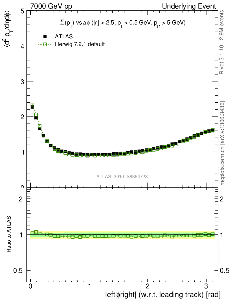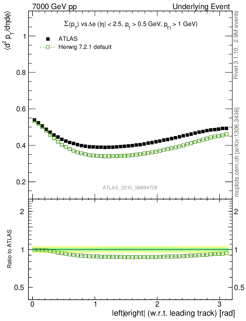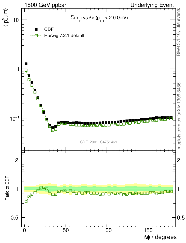 Underlying Event : Δφ distributions : Σ(pT) vs Δφ