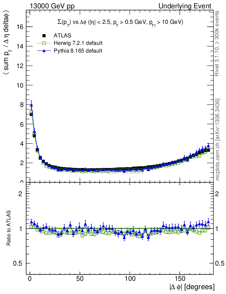 Underlying Event : Δφ distributions : Σ(pT) vs Δφ