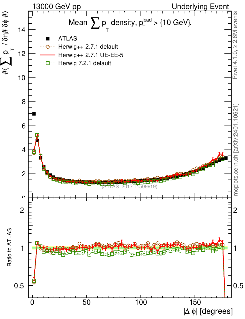 Underlying Event : Δφ distributions : Σ(pT) vs Δφ