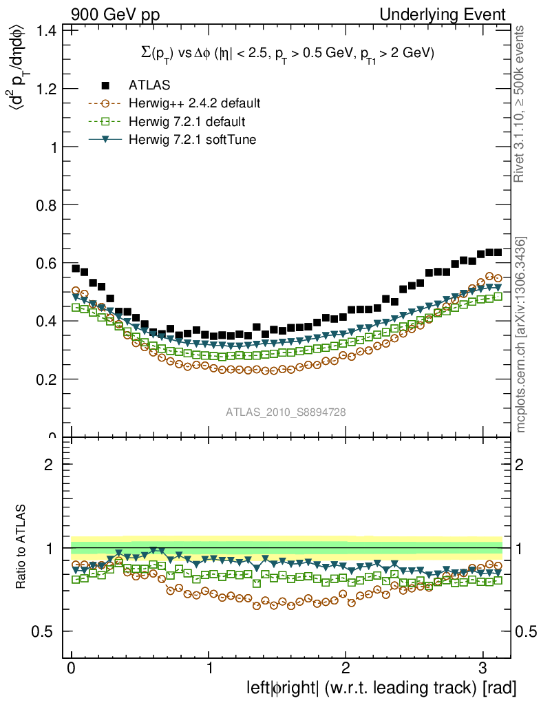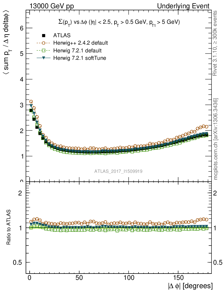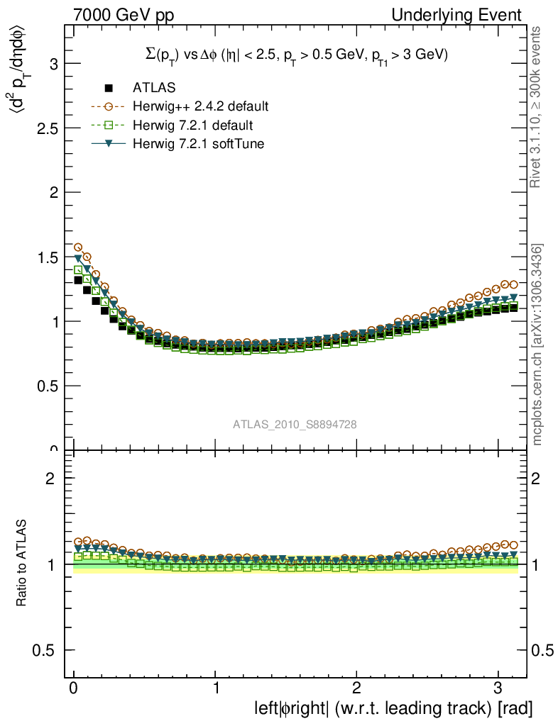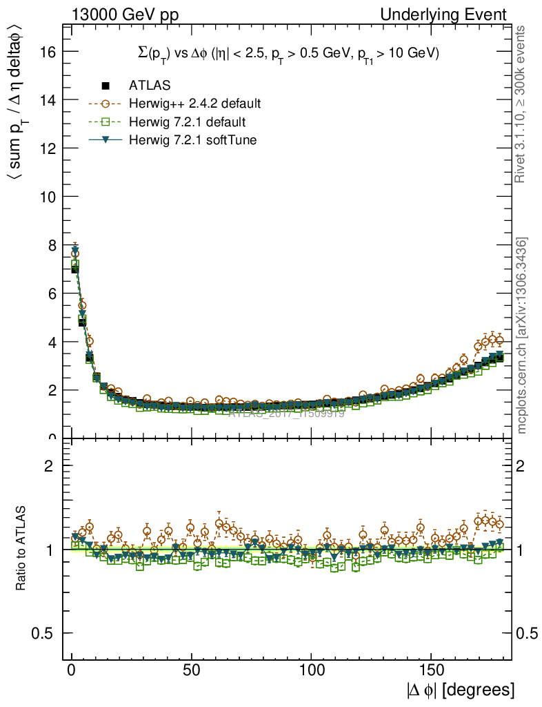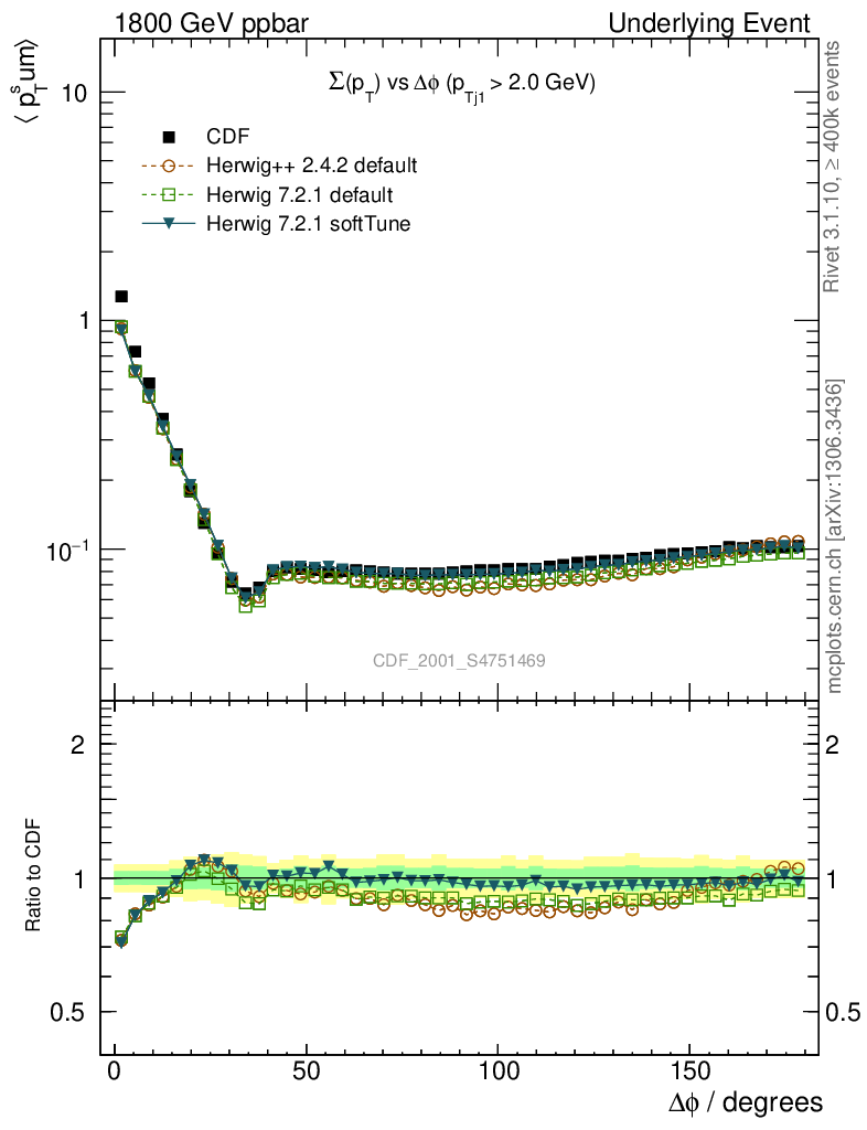 Underlying Event : Δφ distributions : Σ(pT) vs Δφ