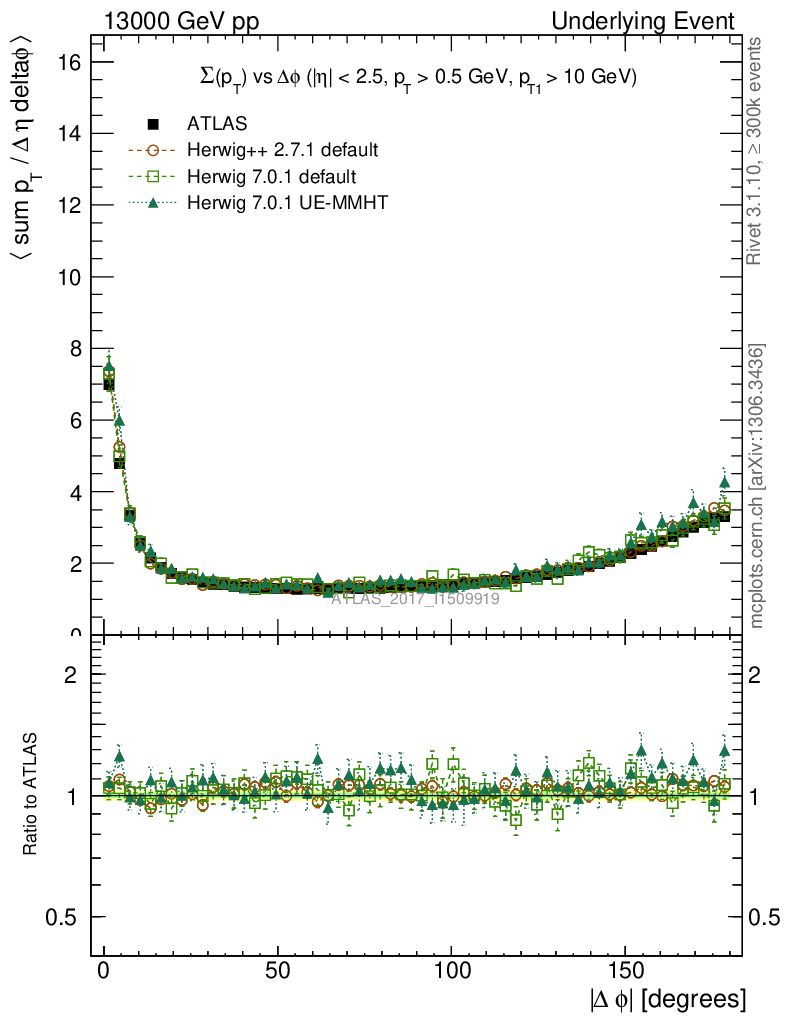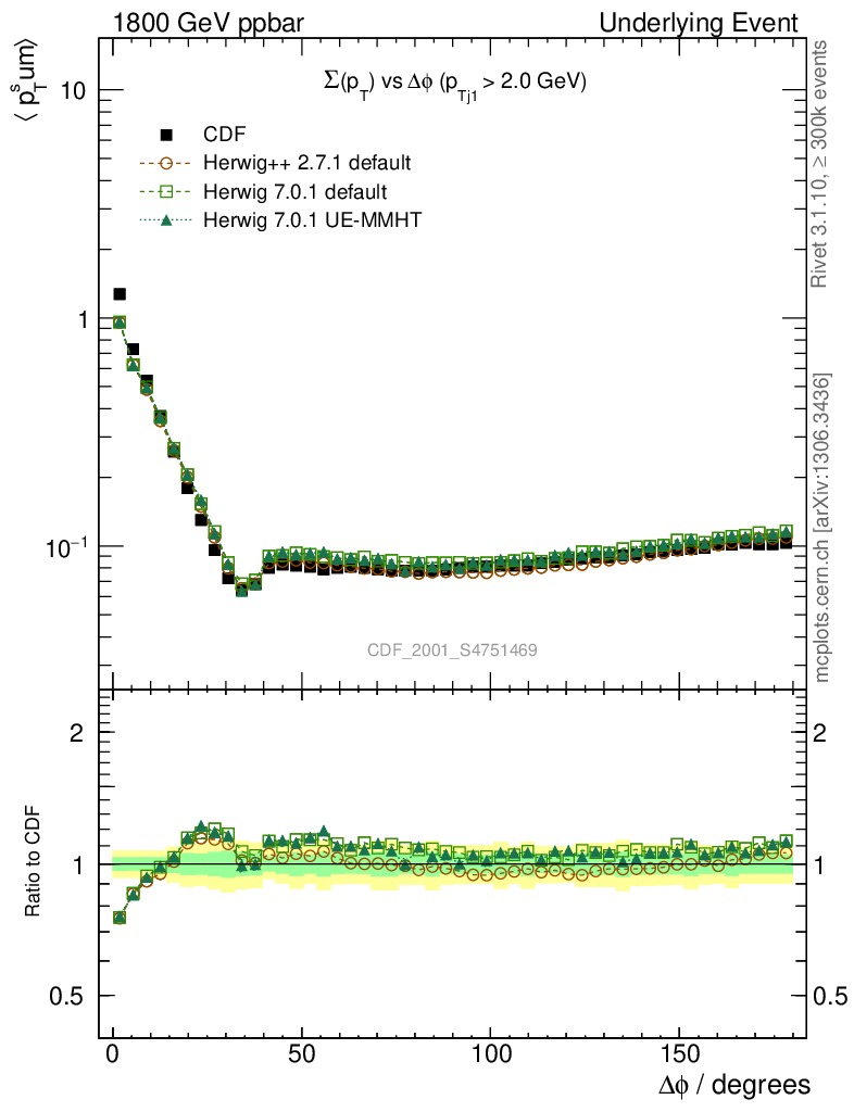 Underlying Event : Δφ distributions : Σ(pT) vs Δφ