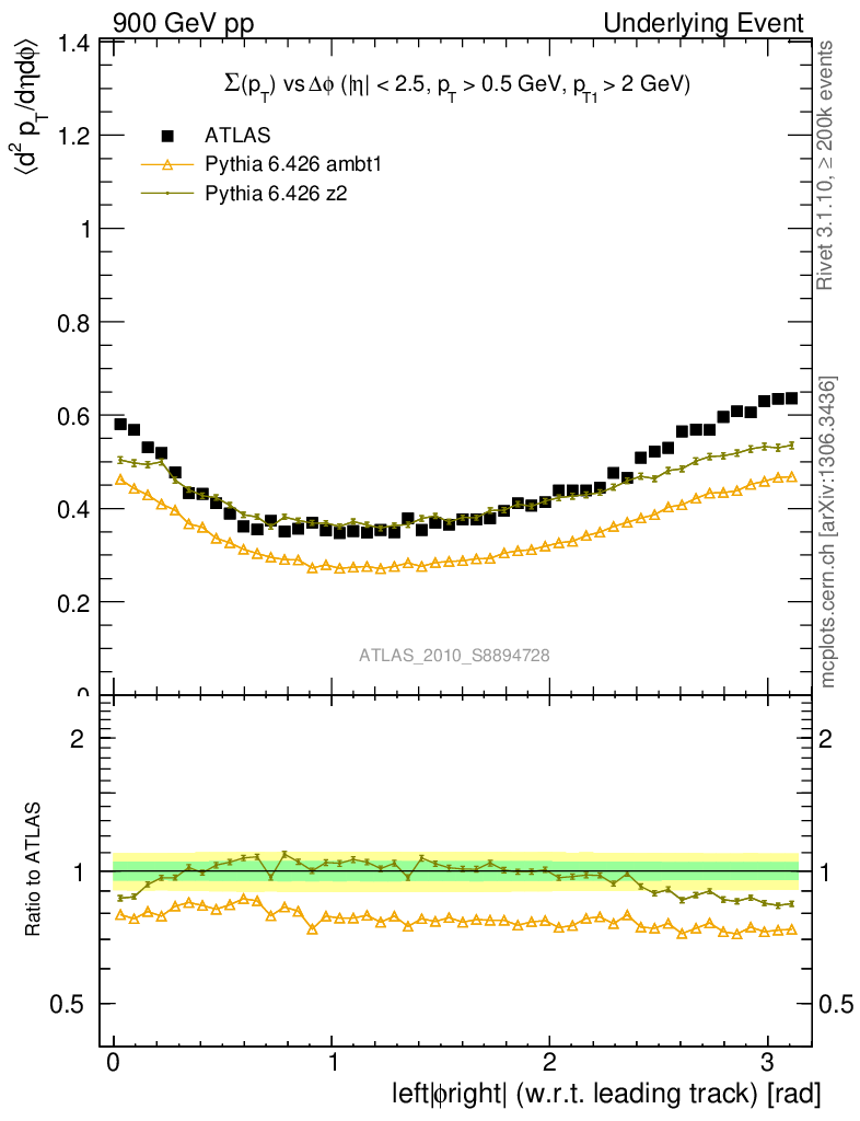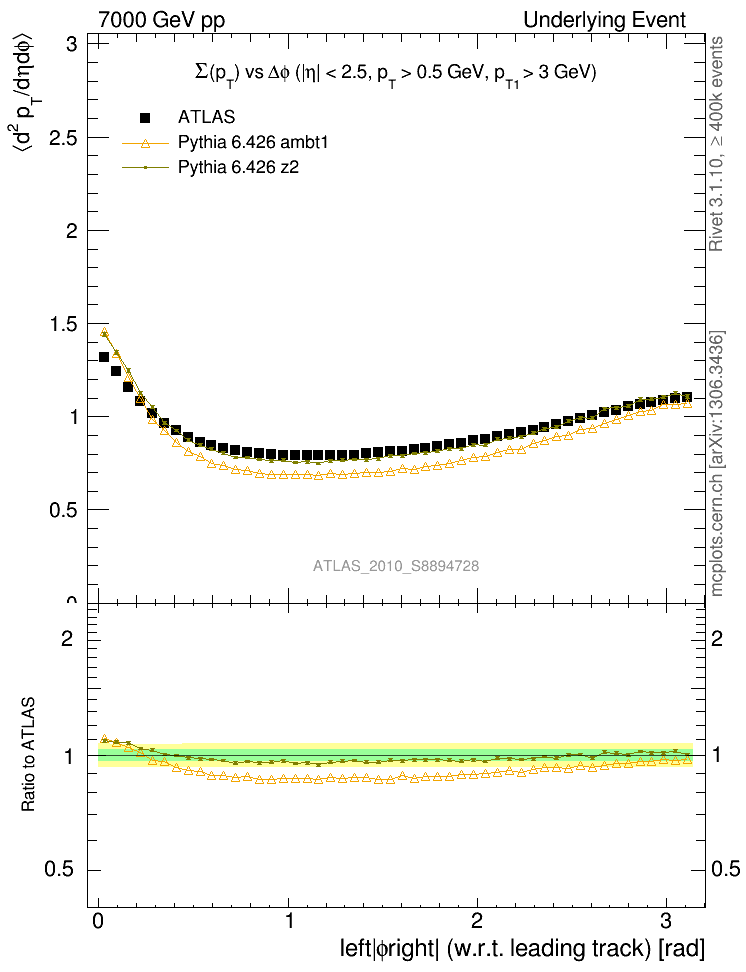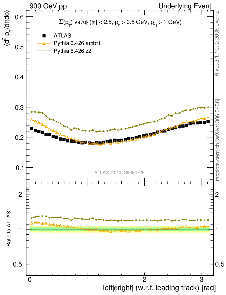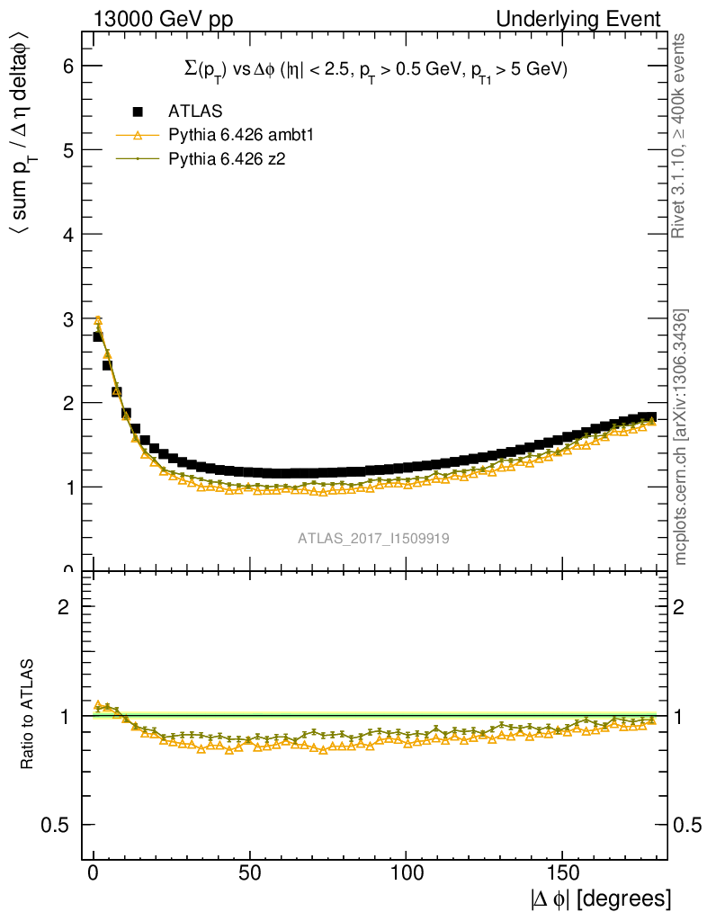 Underlying Event : Δφ distributions : Σ(pT) vs Δφ