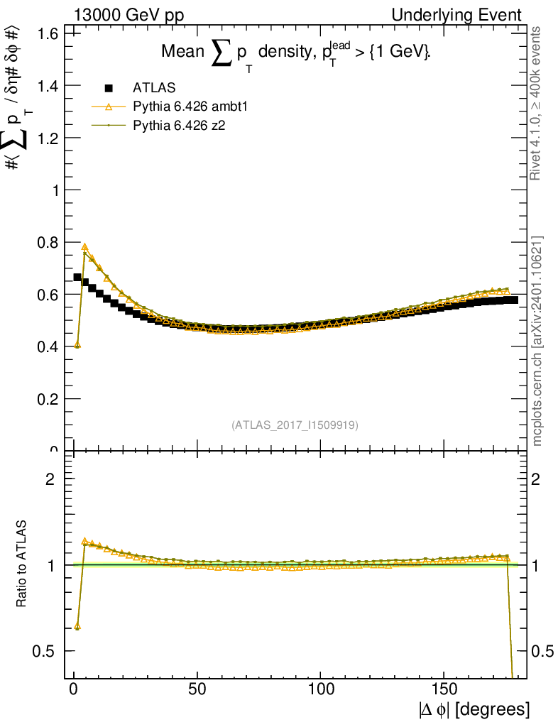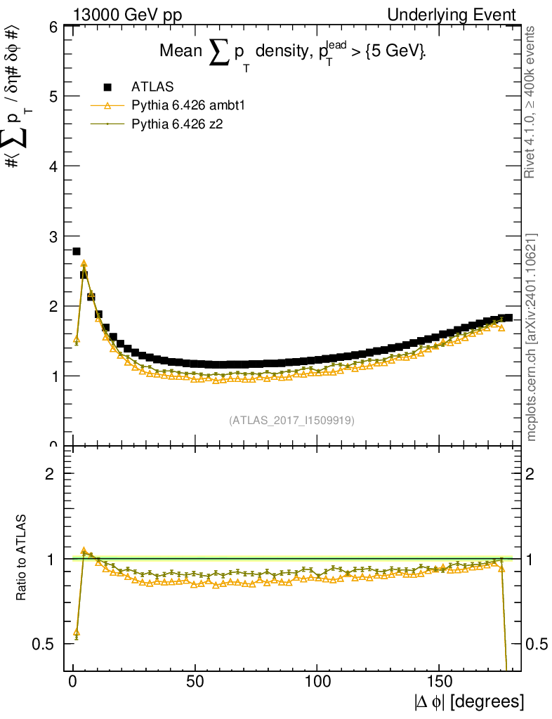 Underlying Event : Δφ distributions : Σ(pT) vs Δφ