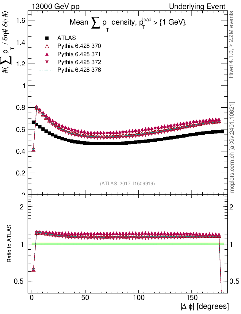 Underlying Event : Δφ distributions : Σ(pT) vs Δφ
