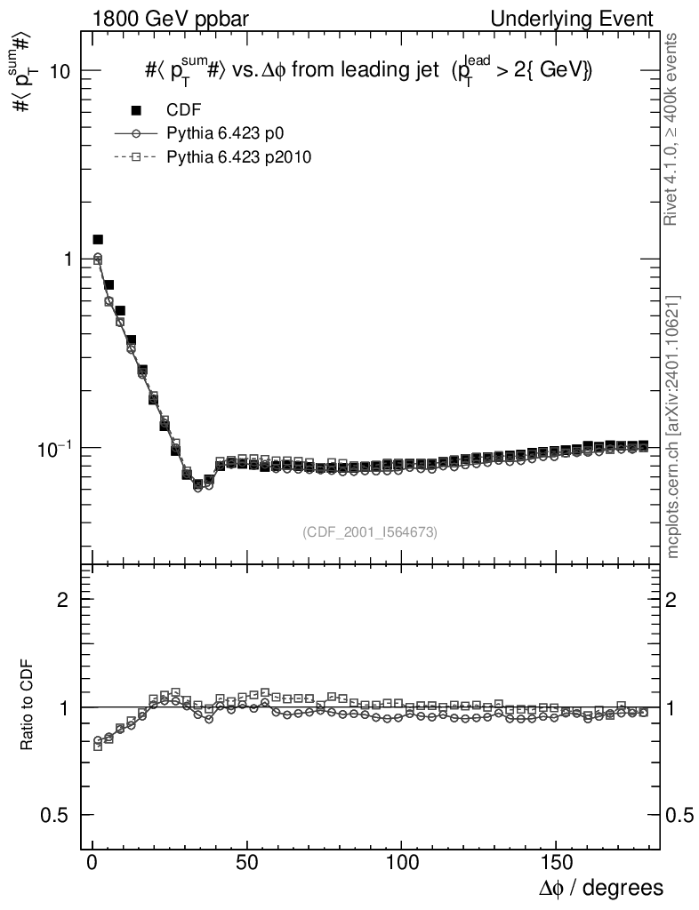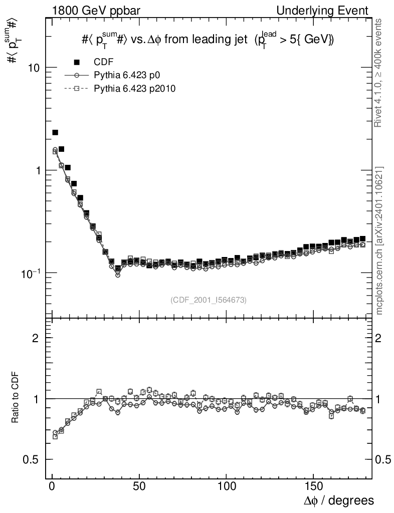 Underlying Event : Δφ distributions : Σ(pT) vs Δφ