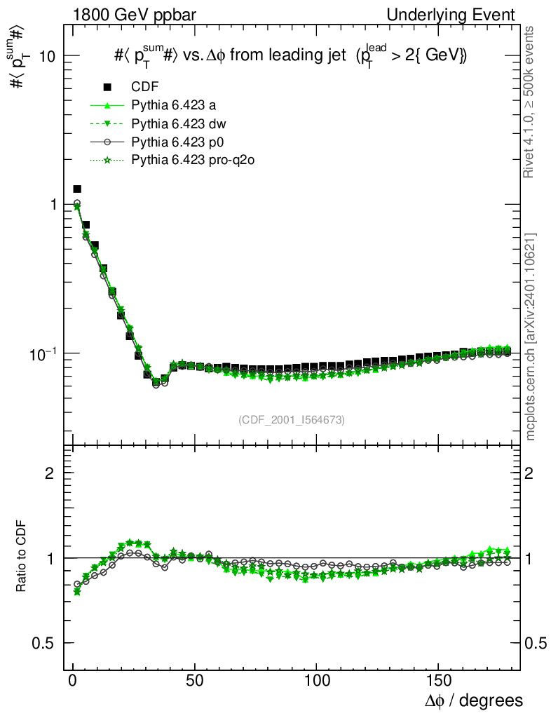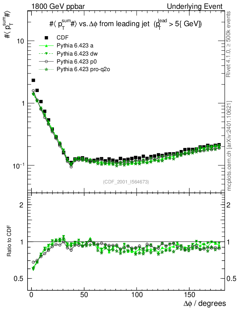 Underlying Event : Δφ distributions : Σ(pT) vs Δφ