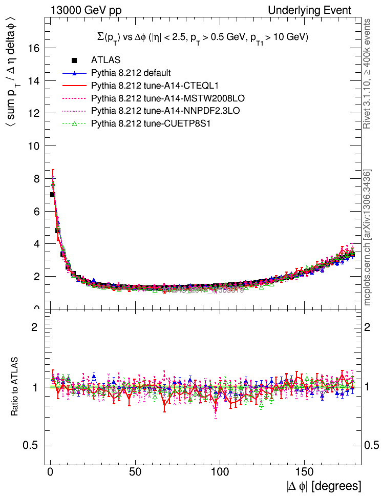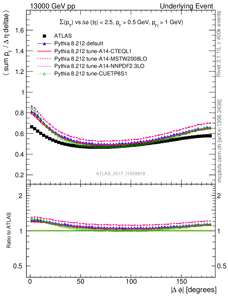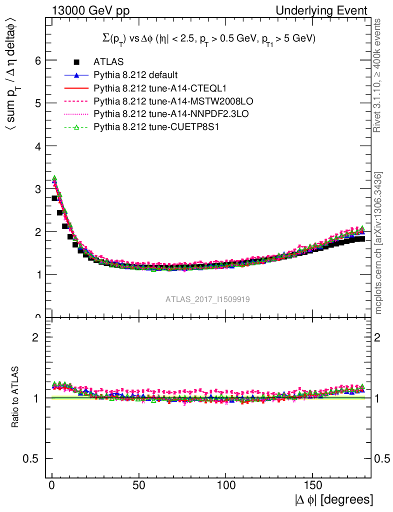 Underlying Event : Δφ distributions : Σ(pT) vs Δφ
