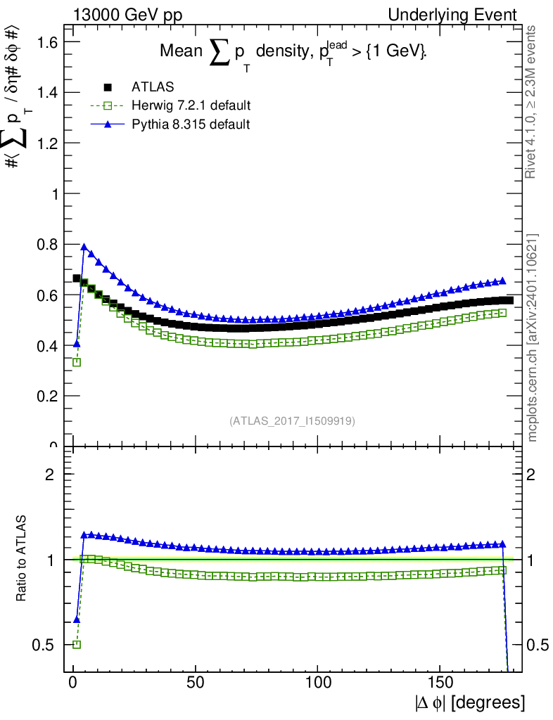 Underlying Event : Δφ distributions : Σ(pT) vs Δφ