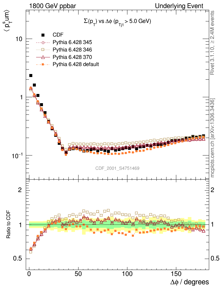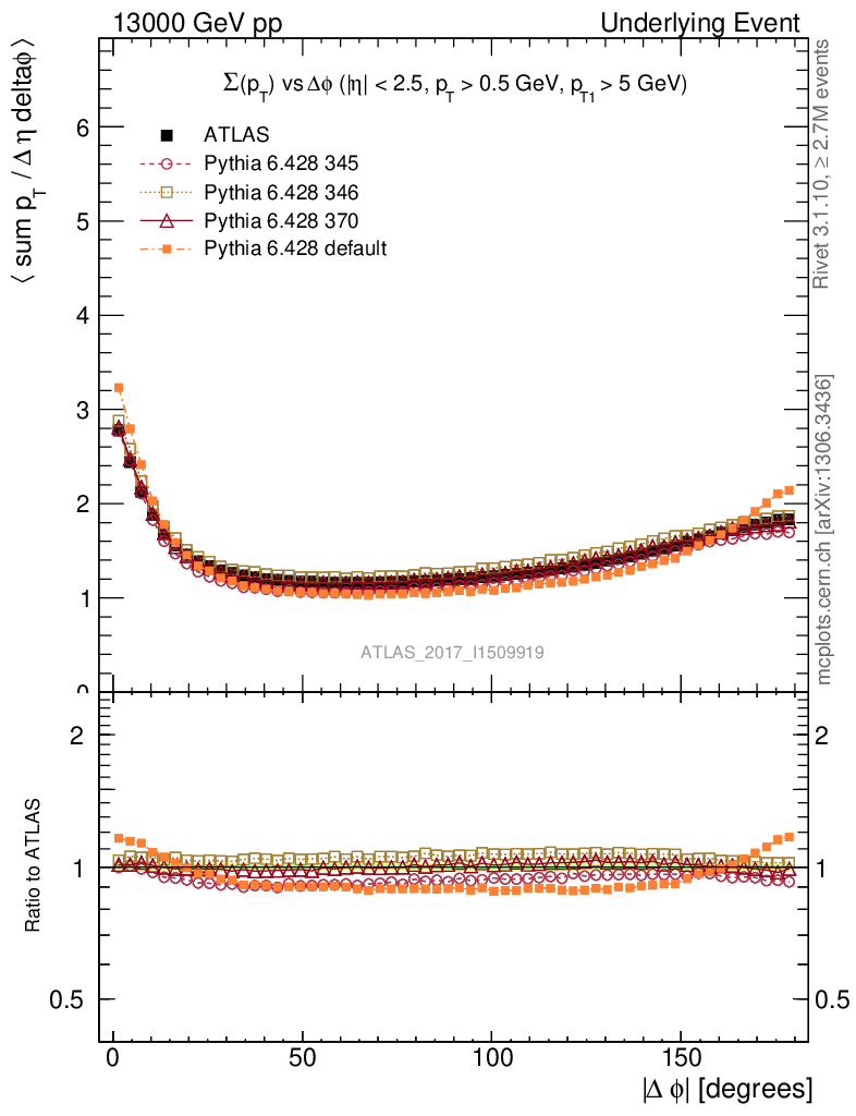 Underlying Event : Δφ distributions : Σ(pT) vs Δφ