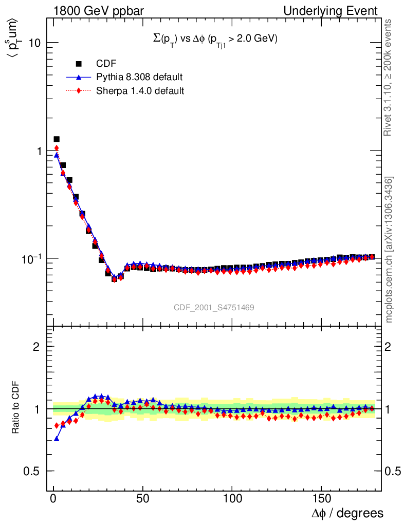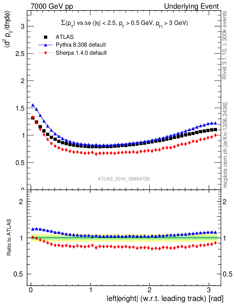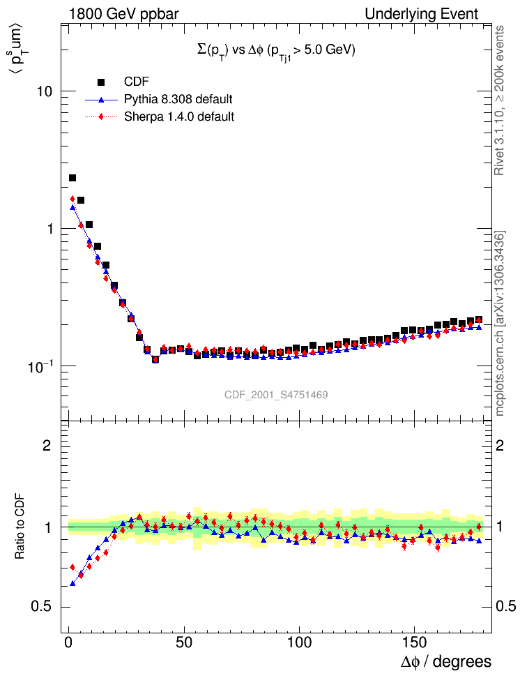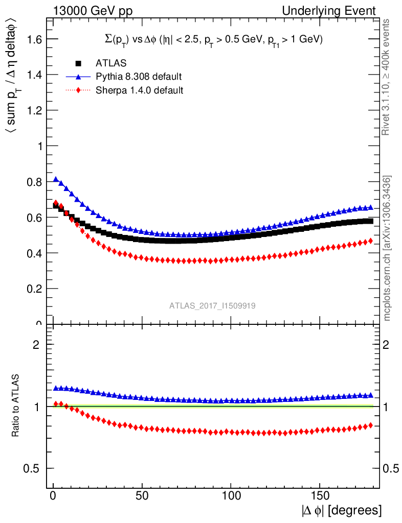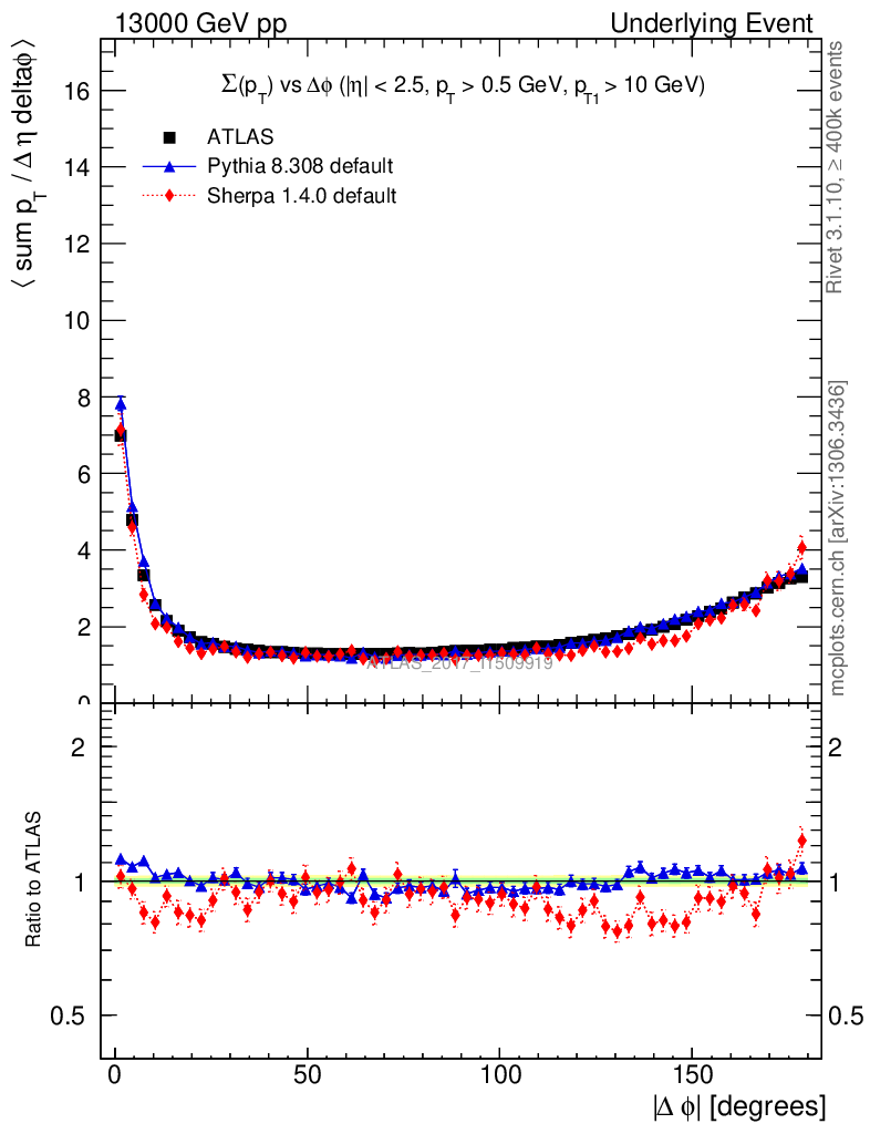 Underlying Event : Δφ distributions : Σ(pT) vs Δφ