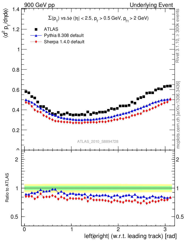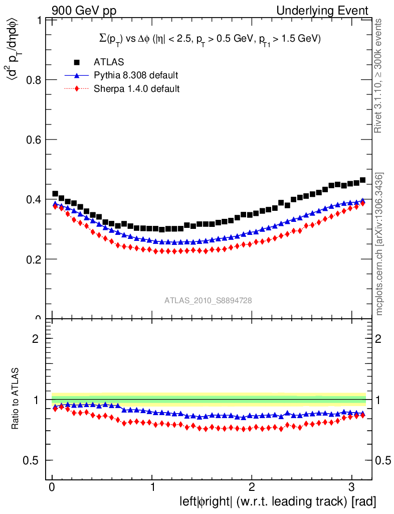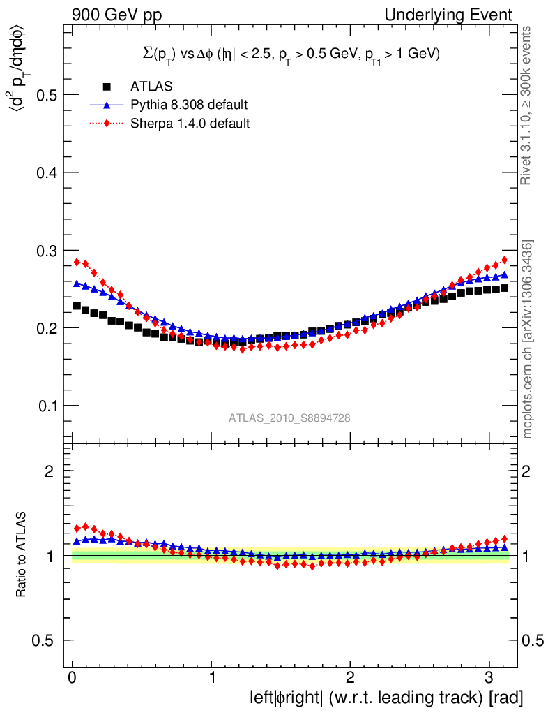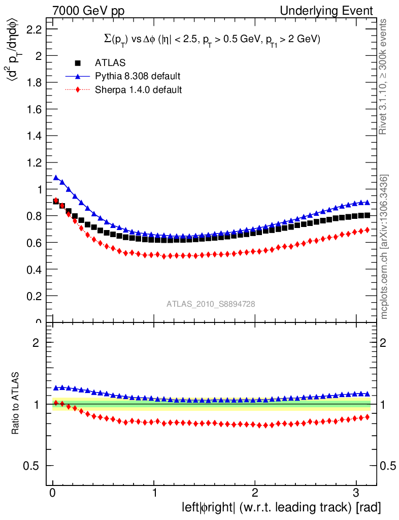 Underlying Event : Δφ distributions : Σ(pT) vs Δφ