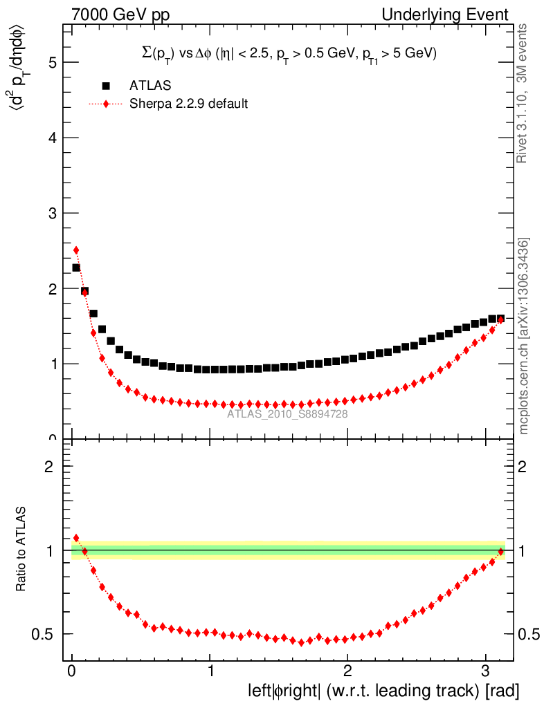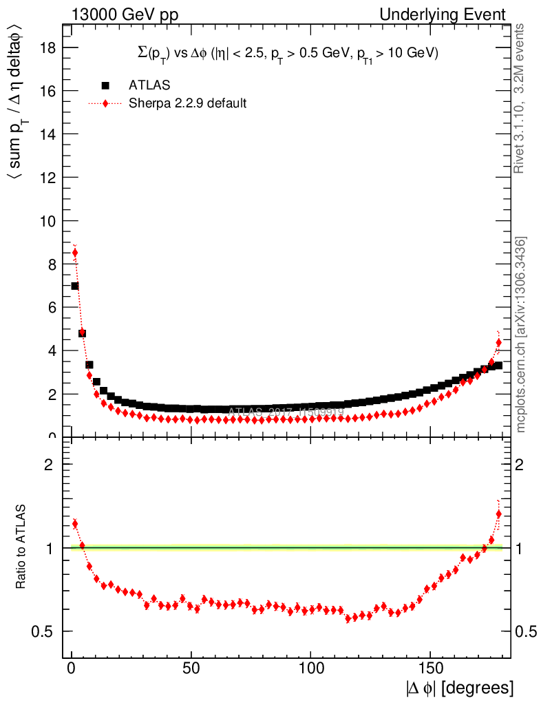 Underlying Event : Δφ distributions : Σ(pT) vs Δφ