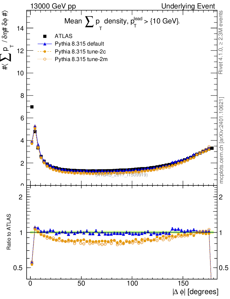 Underlying Event : Δφ distributions : Σ(pT) vs Δφ