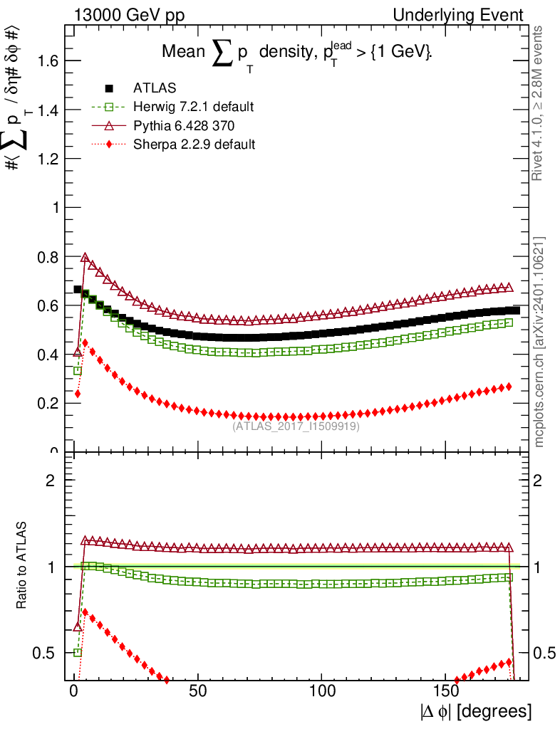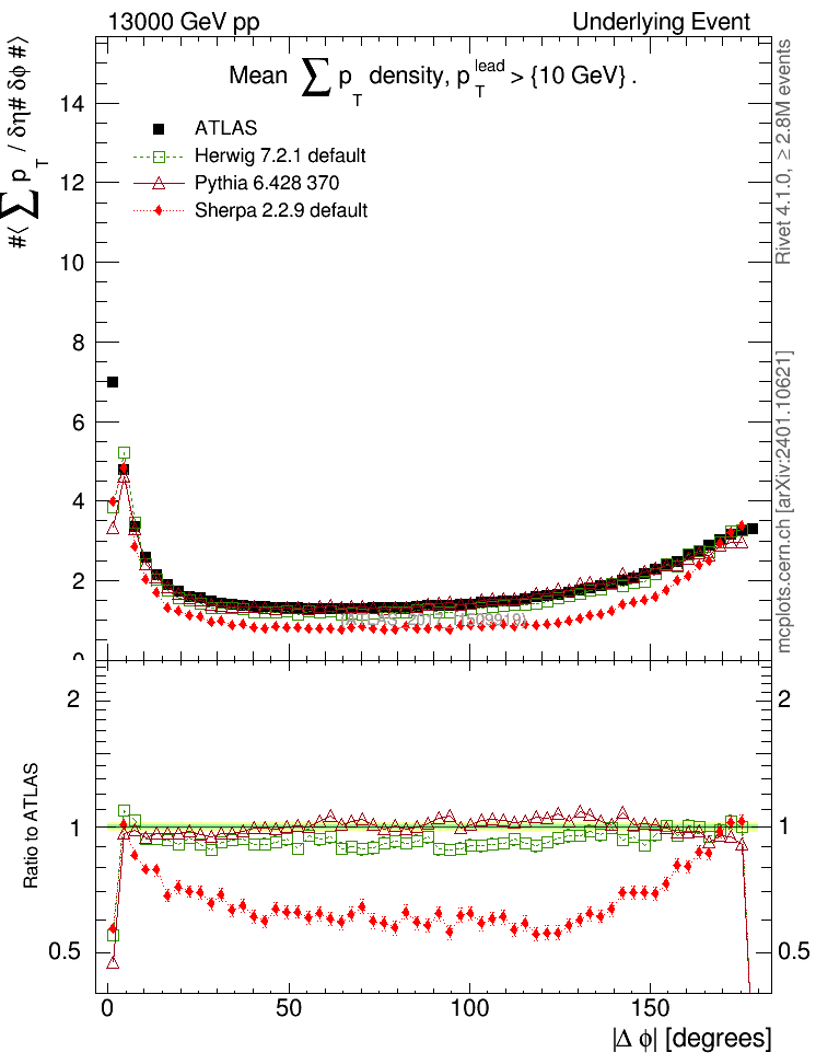 Underlying Event : Δφ distributions : Σ(pT) vs Δφ