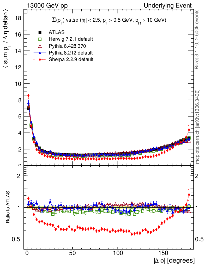 Underlying Event : Δφ distributions : Σ(pT) vs Δφ