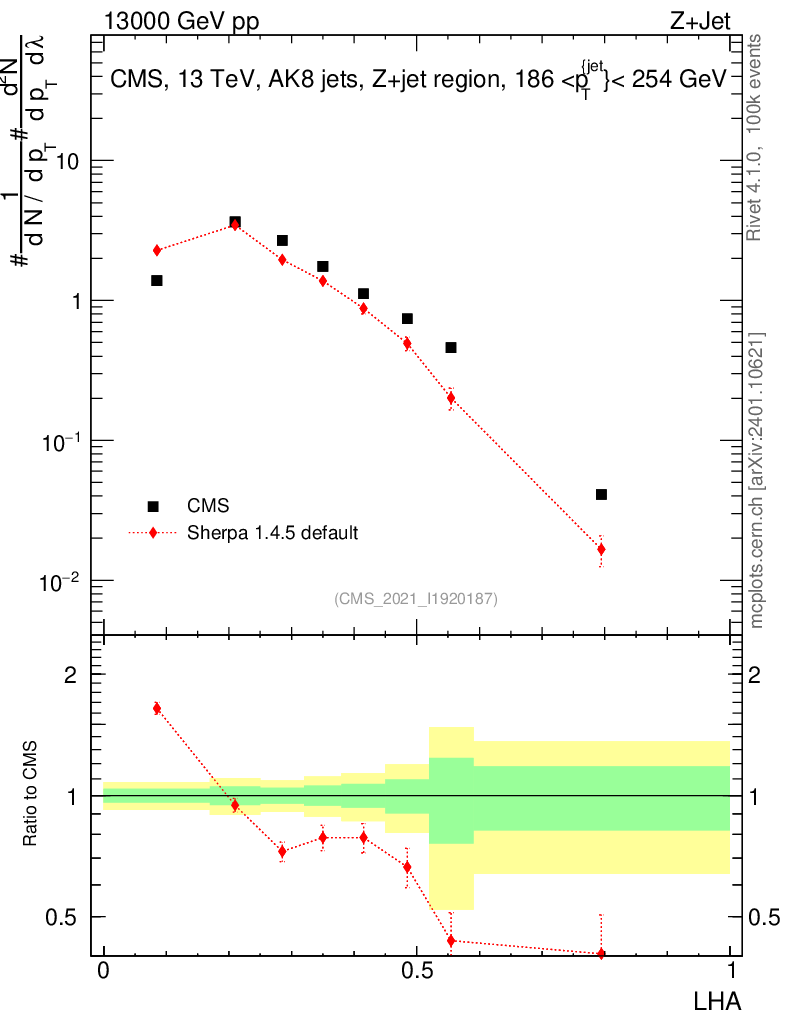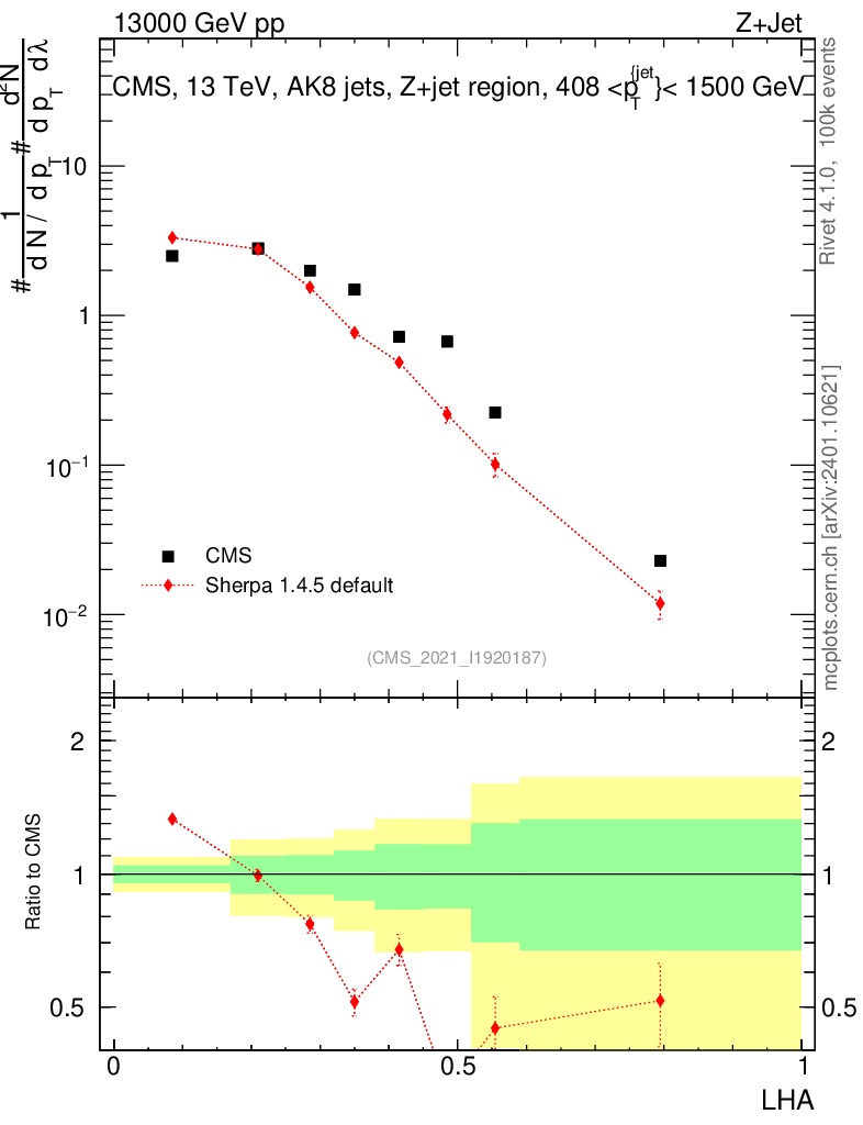 Z+Jet : Generalized angularities : LHA λ