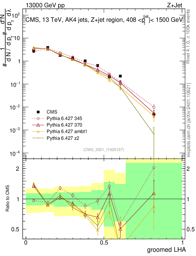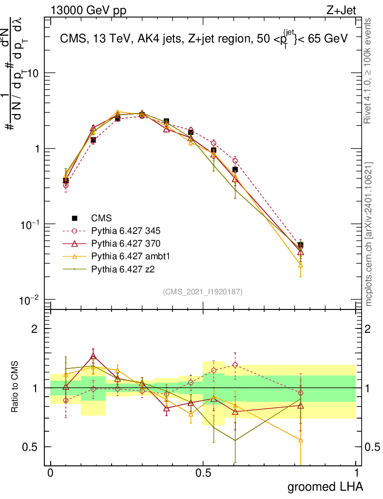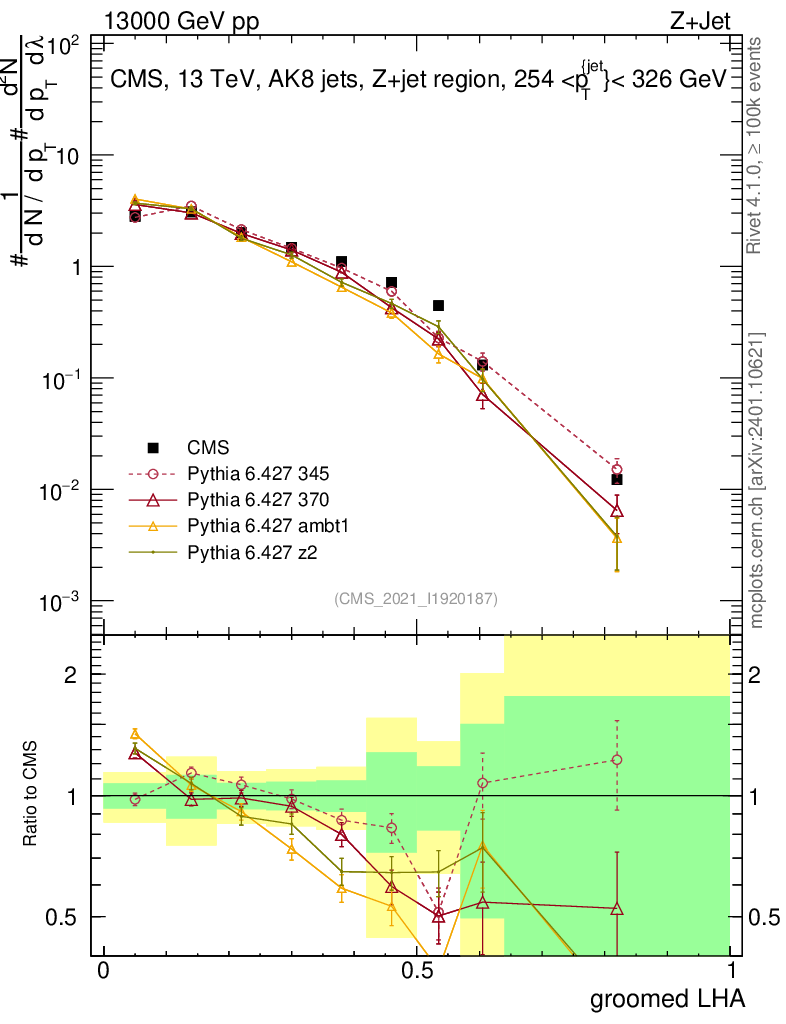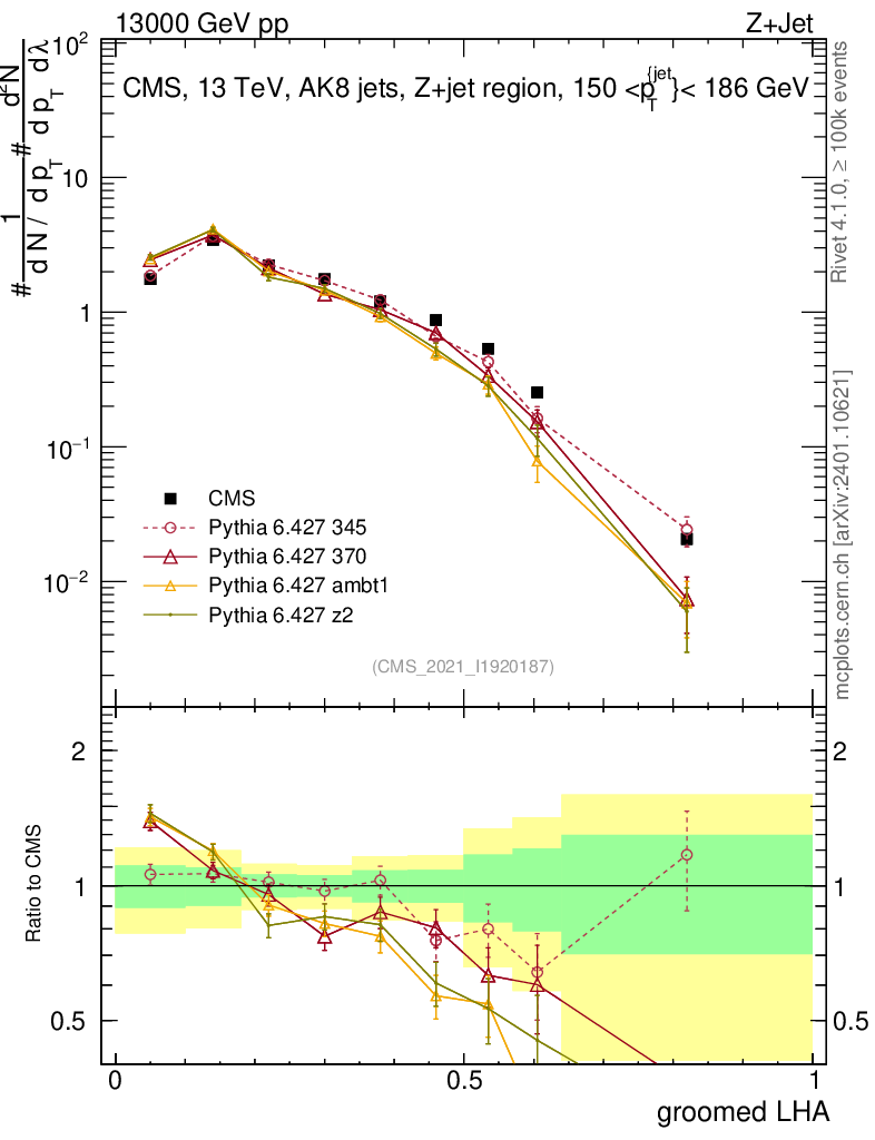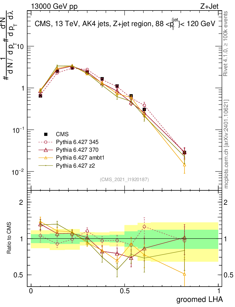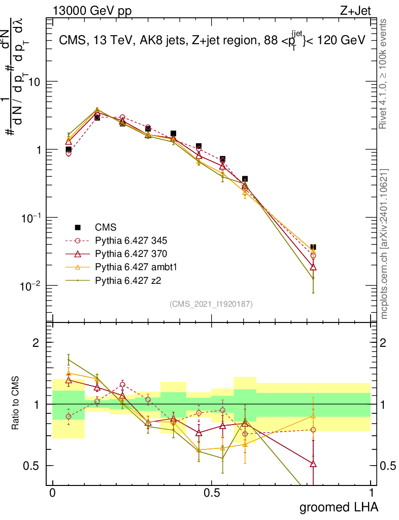 Z+Jet : Generalized angularities : Groomed LHA λ