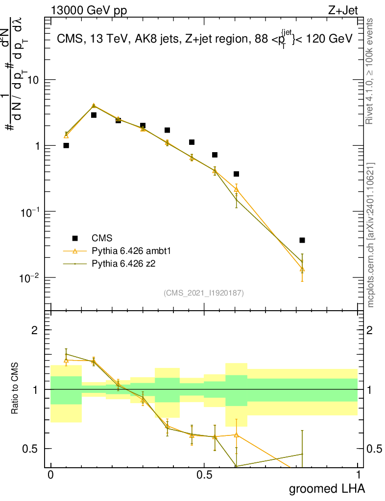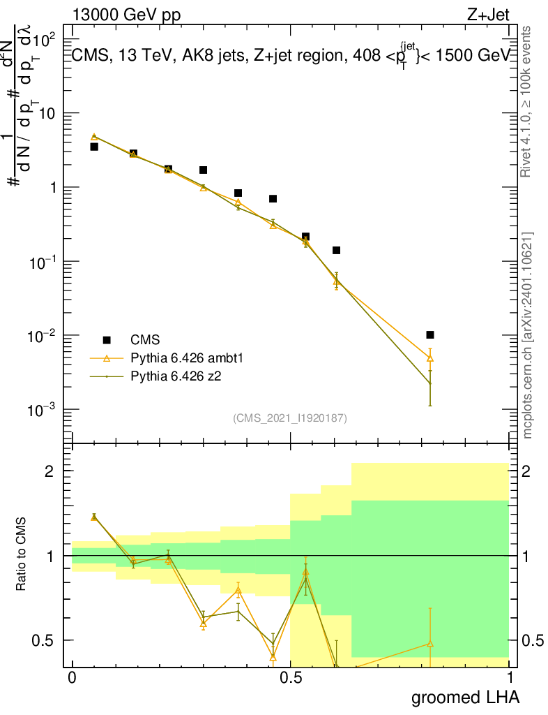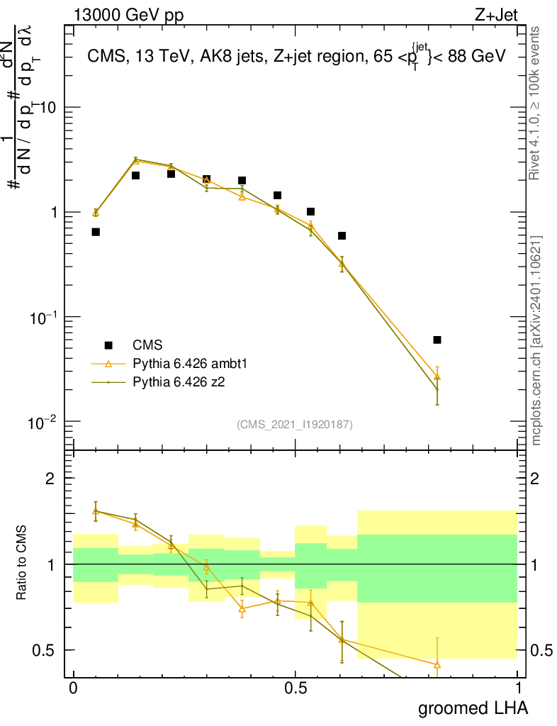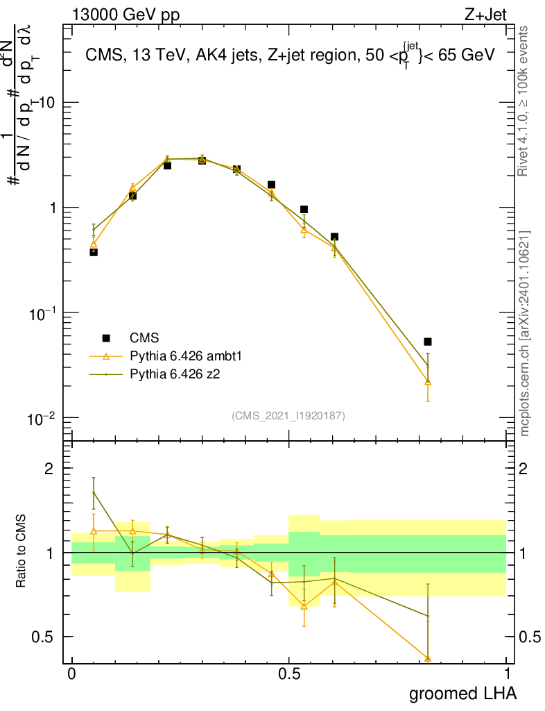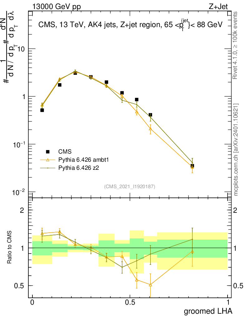Z+Jet : Generalized angularities : Groomed LHA λ