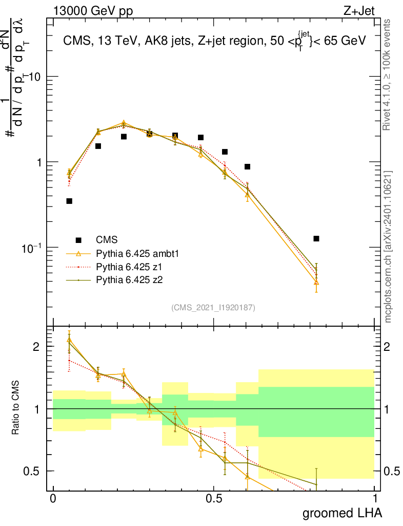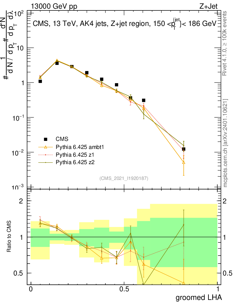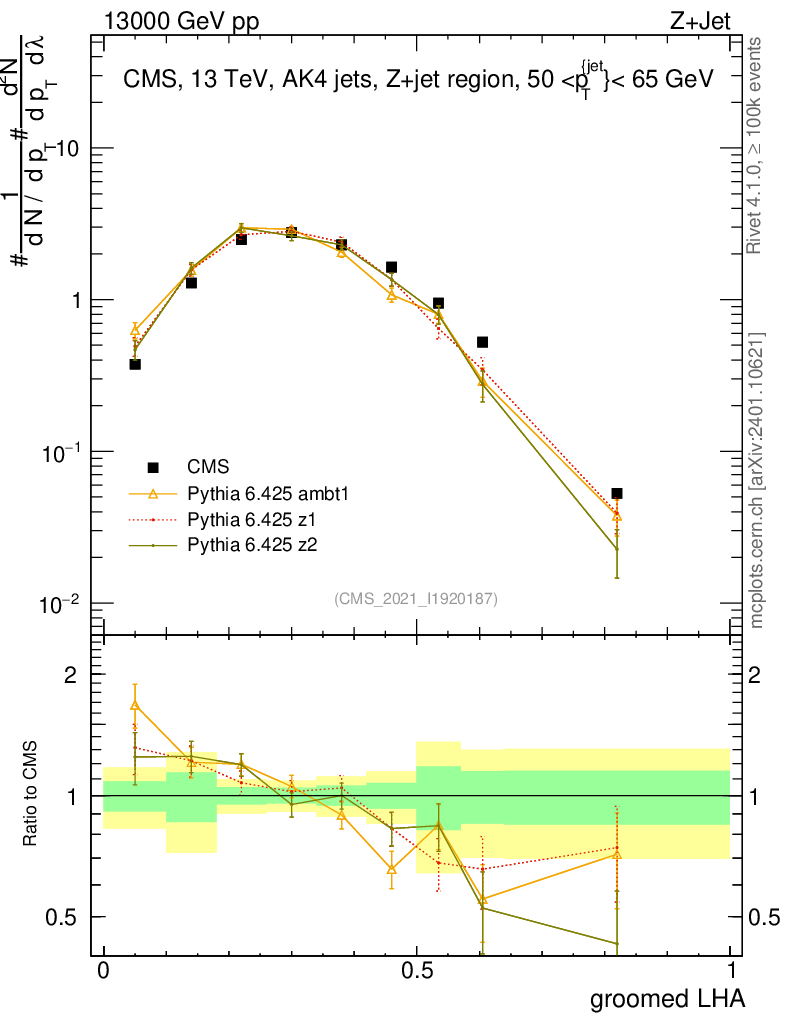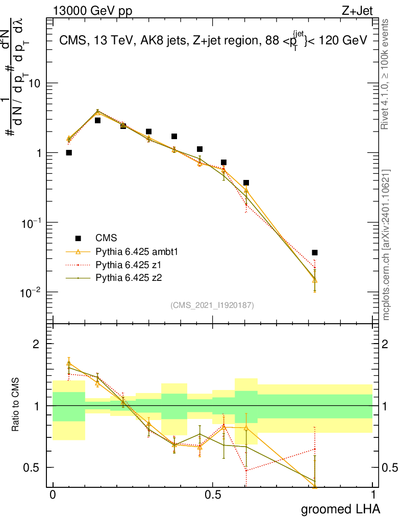 Z+Jet : Generalized angularities : Groomed LHA λ