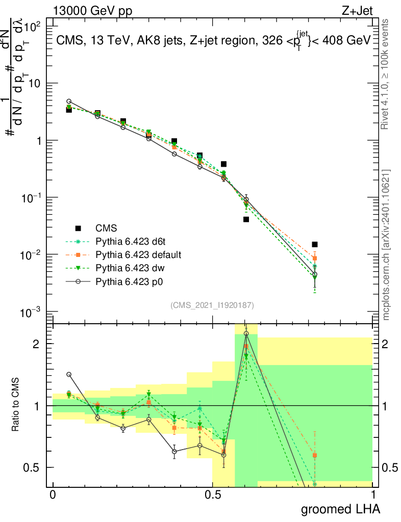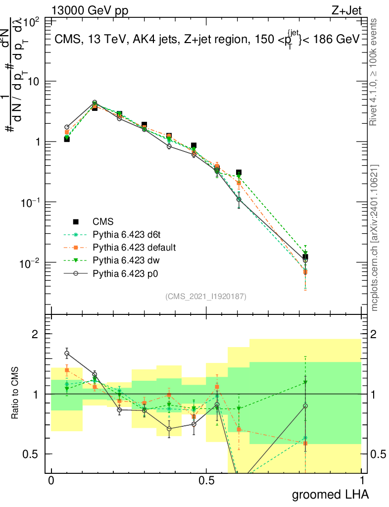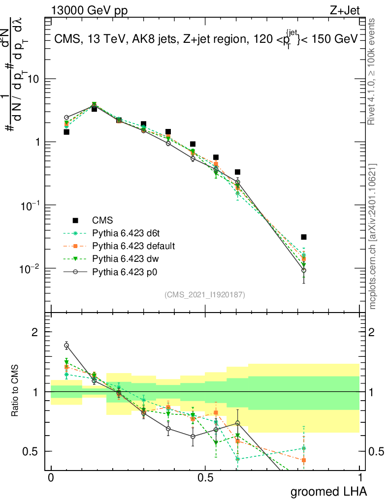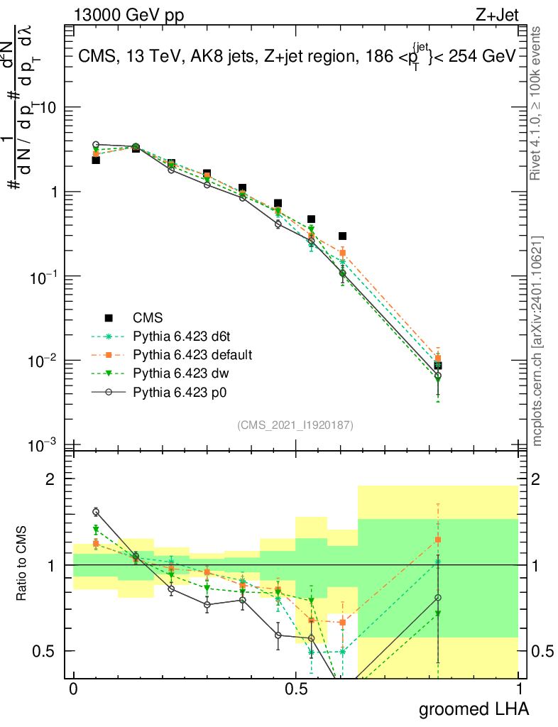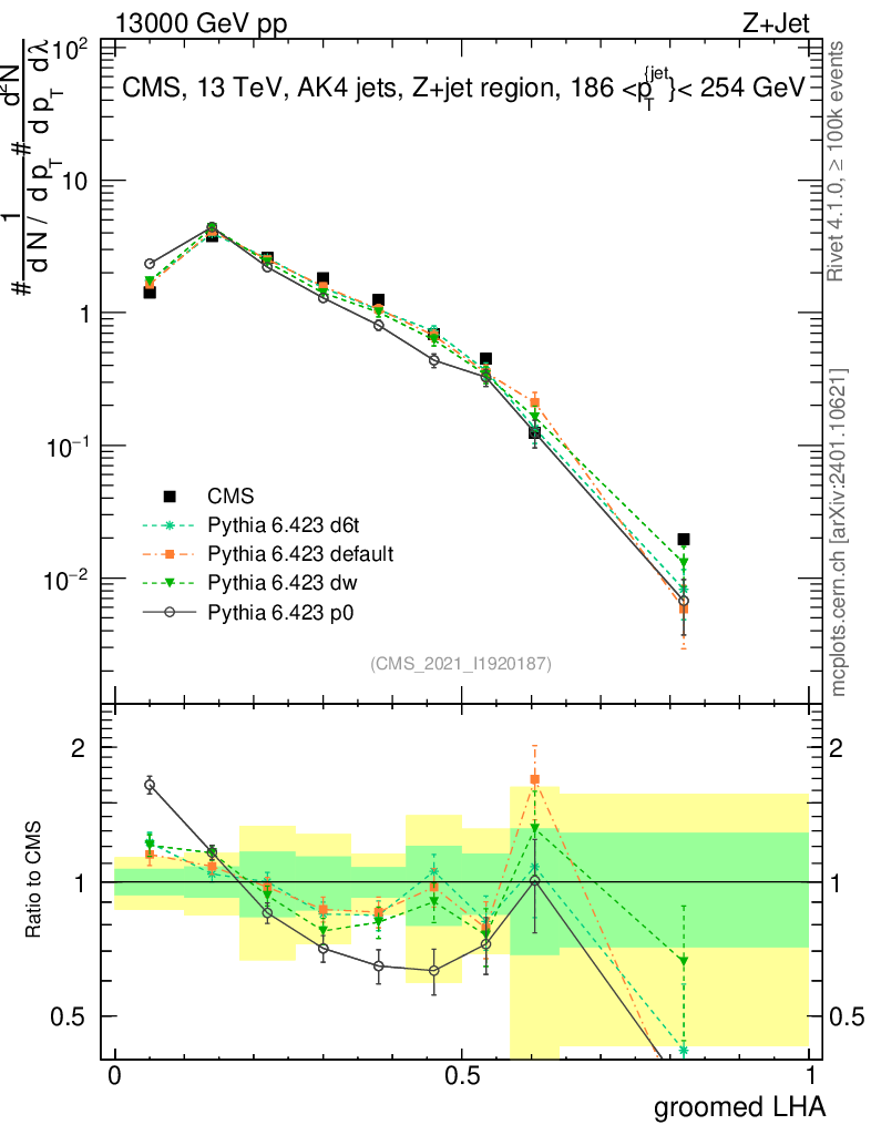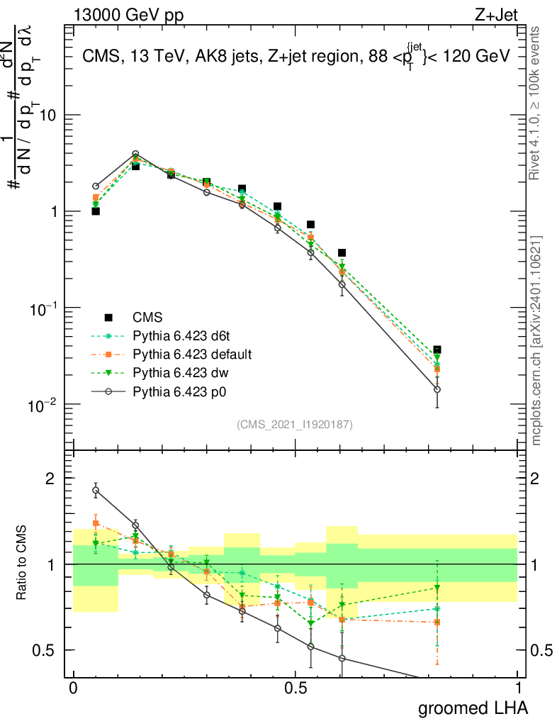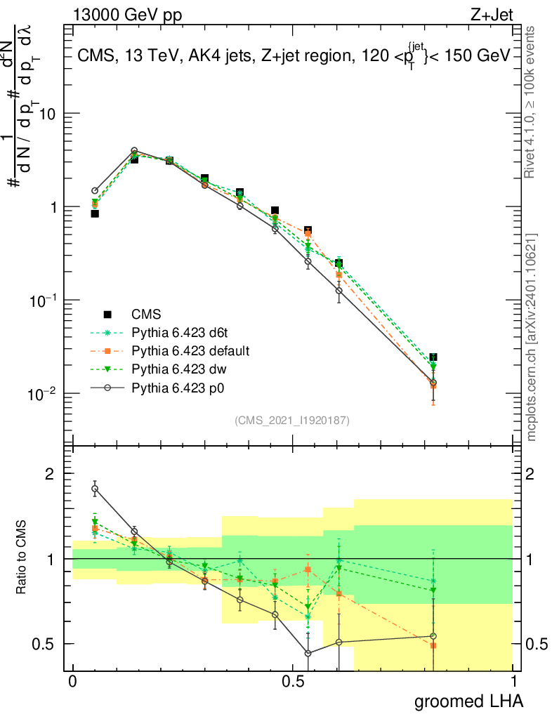 Z+Jet : Generalized angularities : Groomed LHA λ