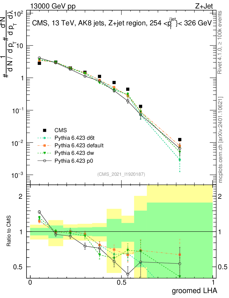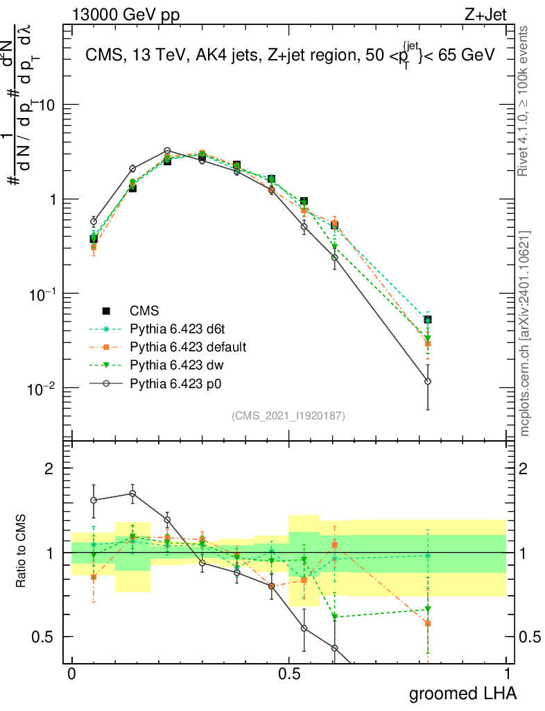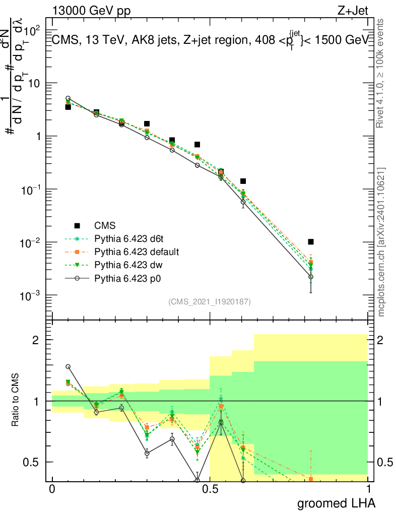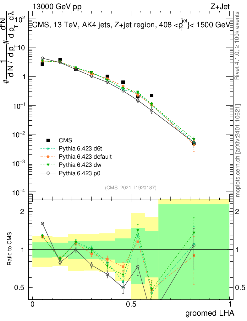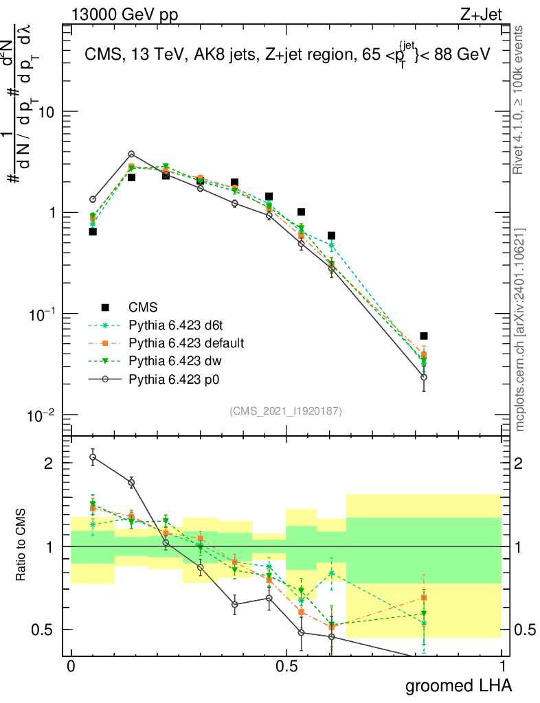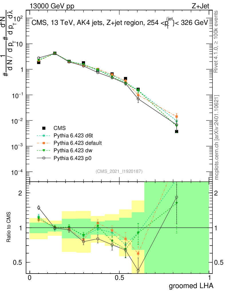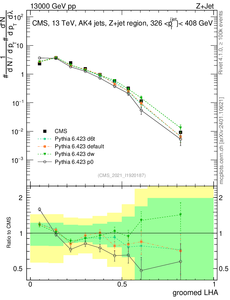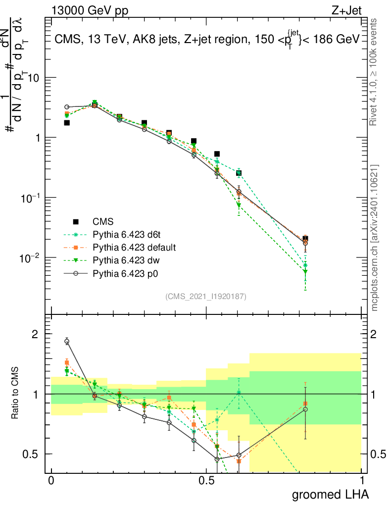 Z+Jet : Generalized angularities : Groomed LHA λ