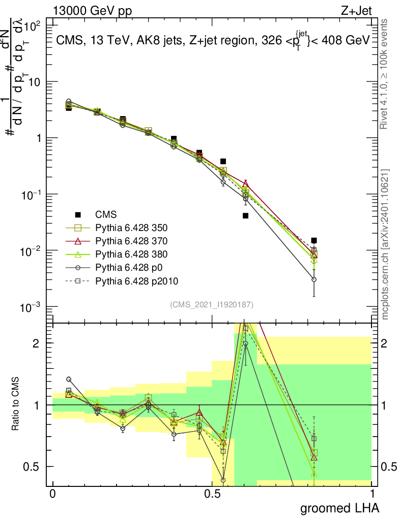 Z+Jet : Generalized angularities : Groomed LHA λ