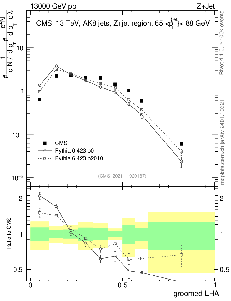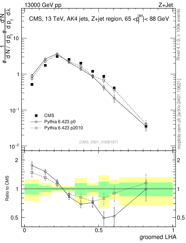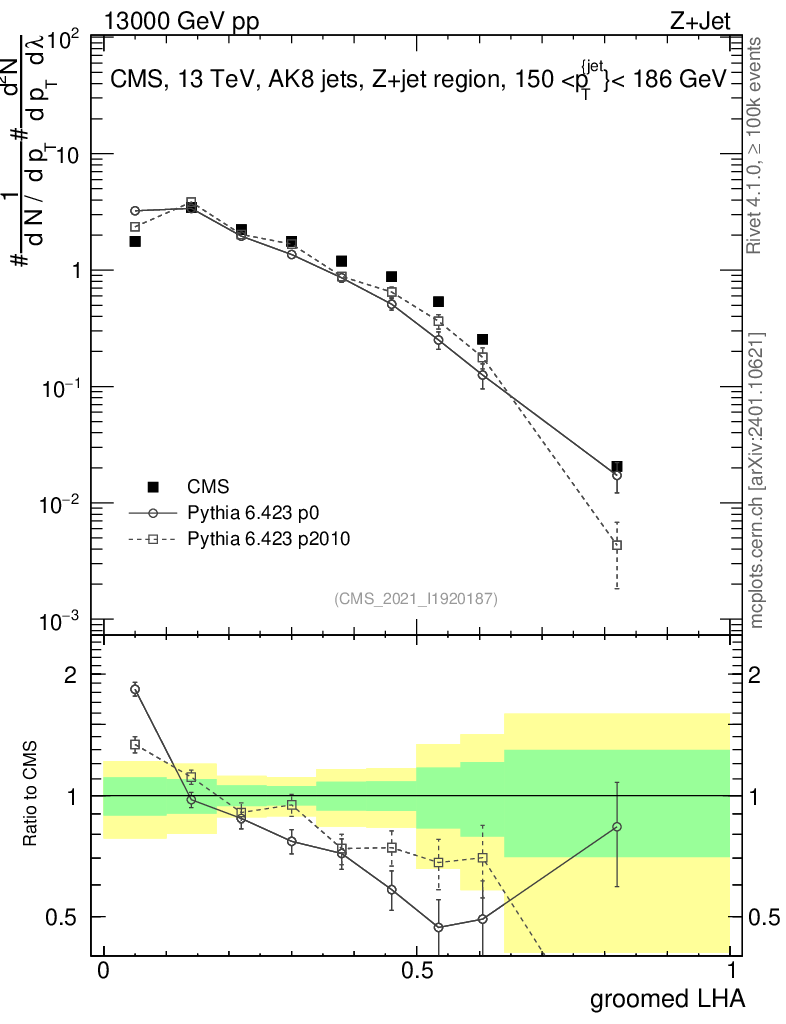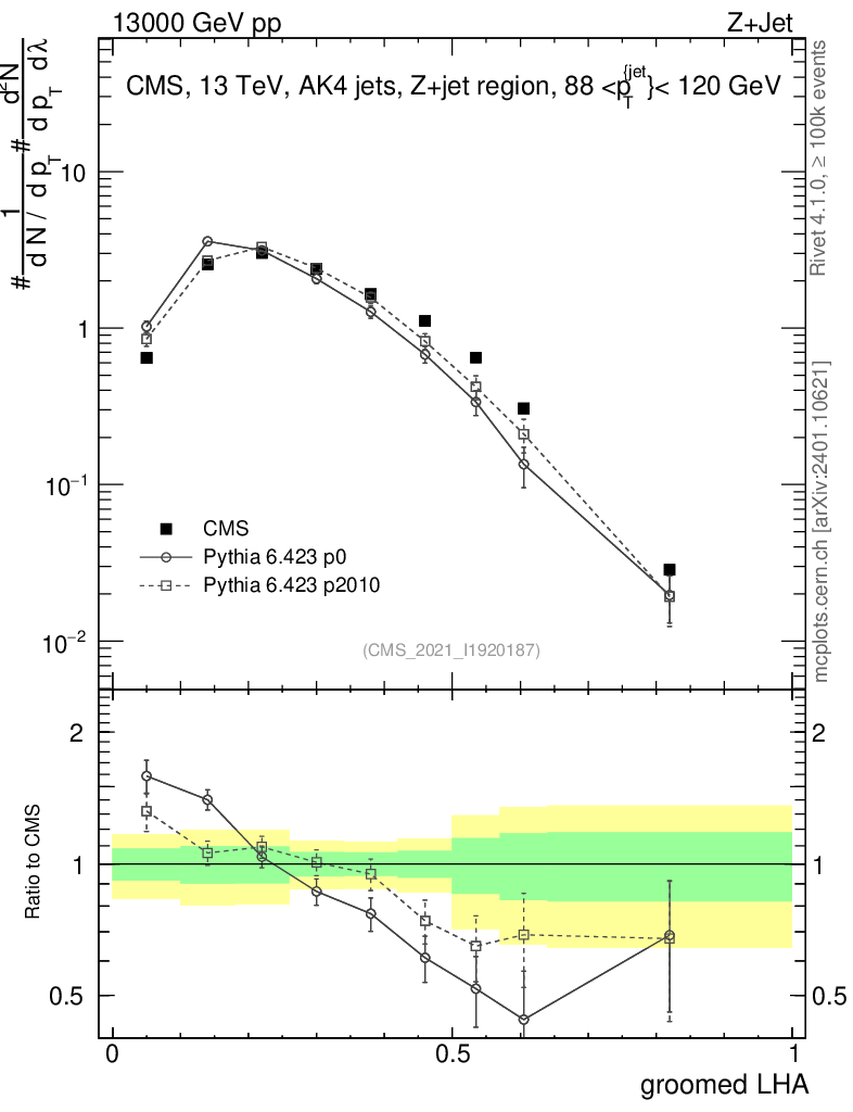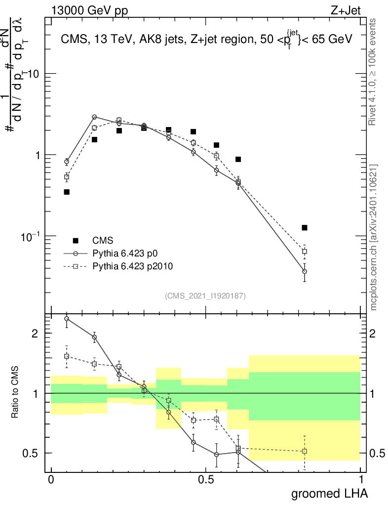 Z+Jet : Generalized angularities : Groomed LHA λ