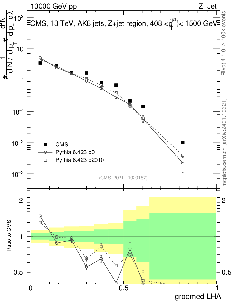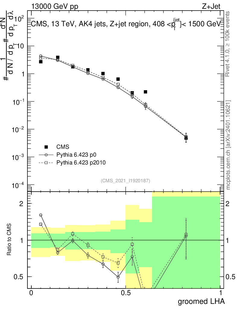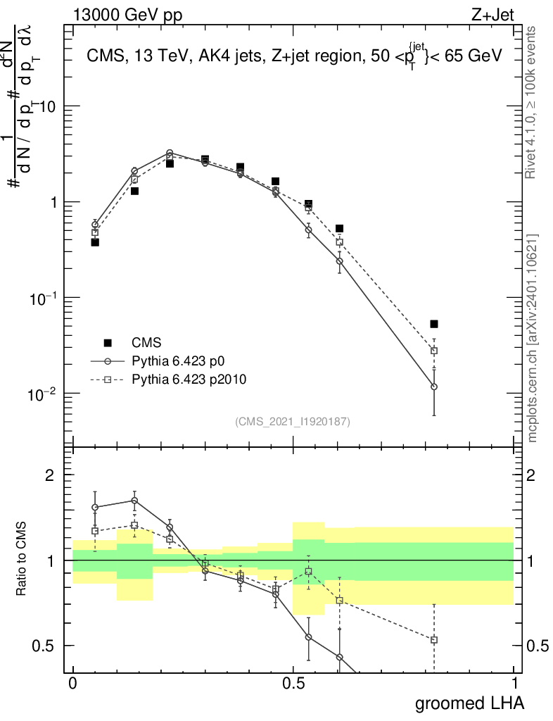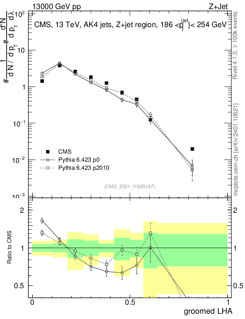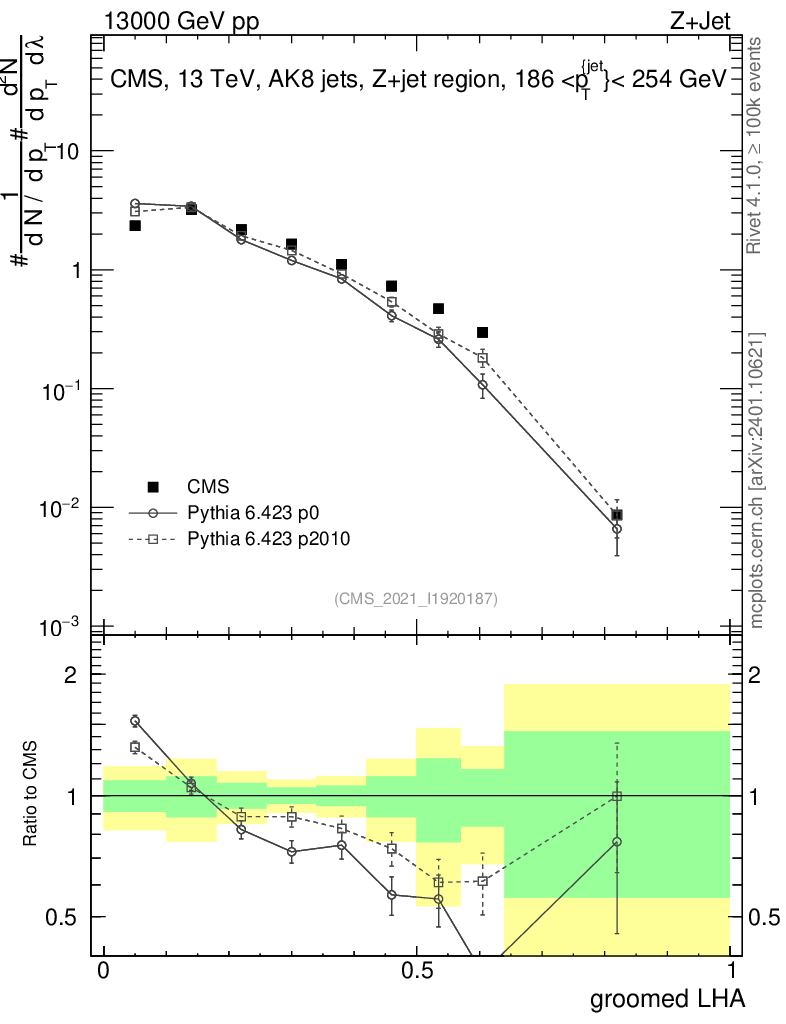 Z+Jet : Generalized angularities : Groomed LHA λ