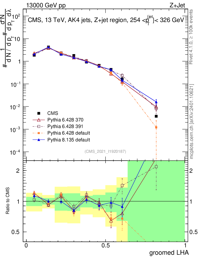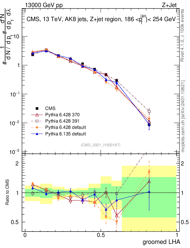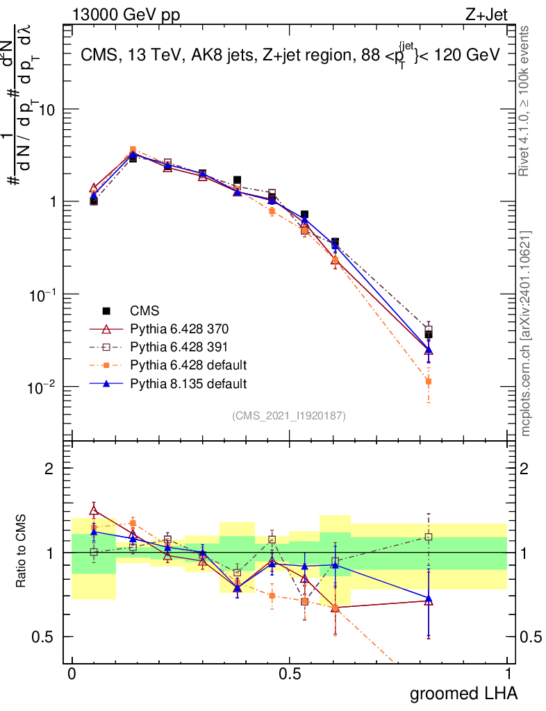 Z+Jet : Generalized angularities : Groomed LHA λ