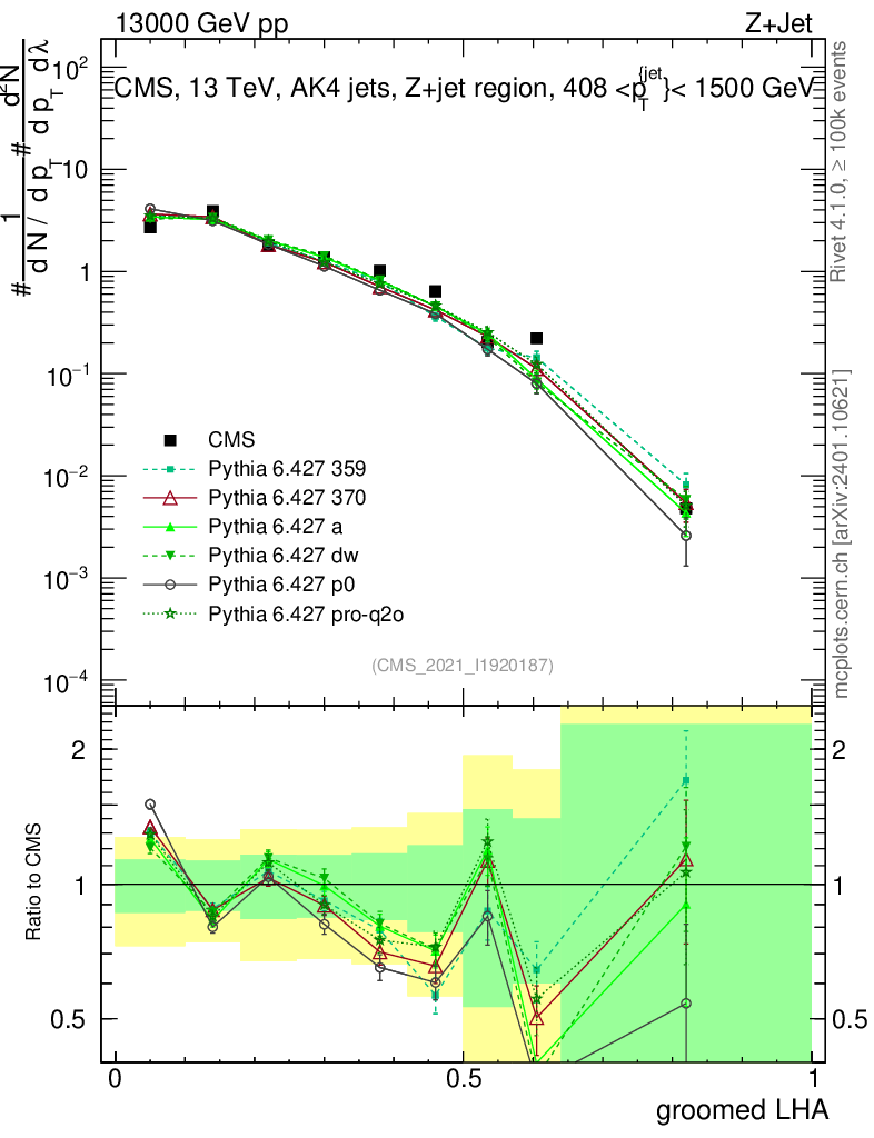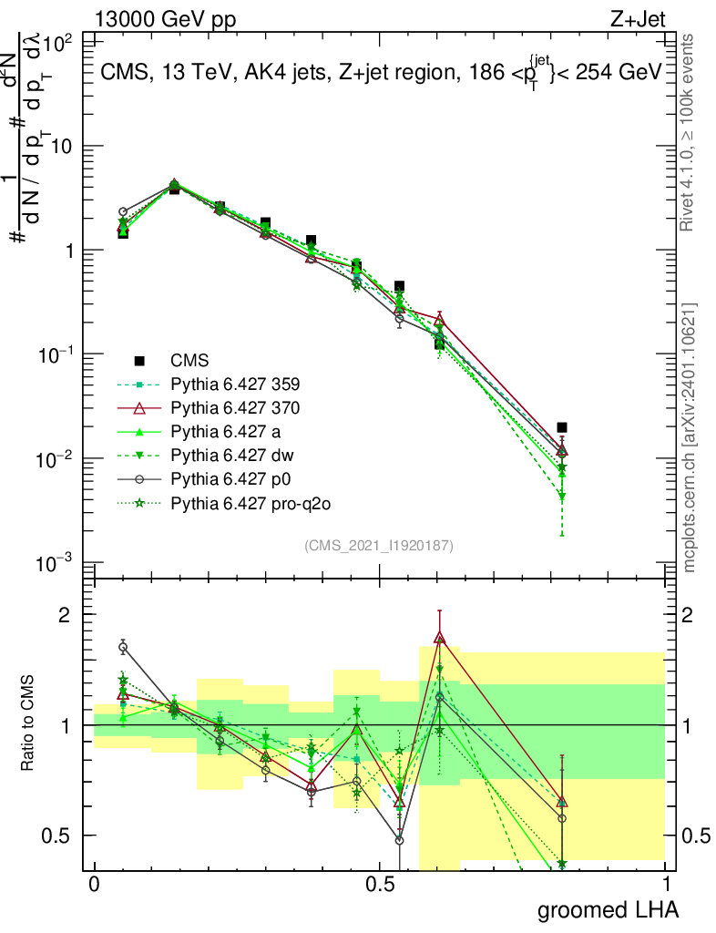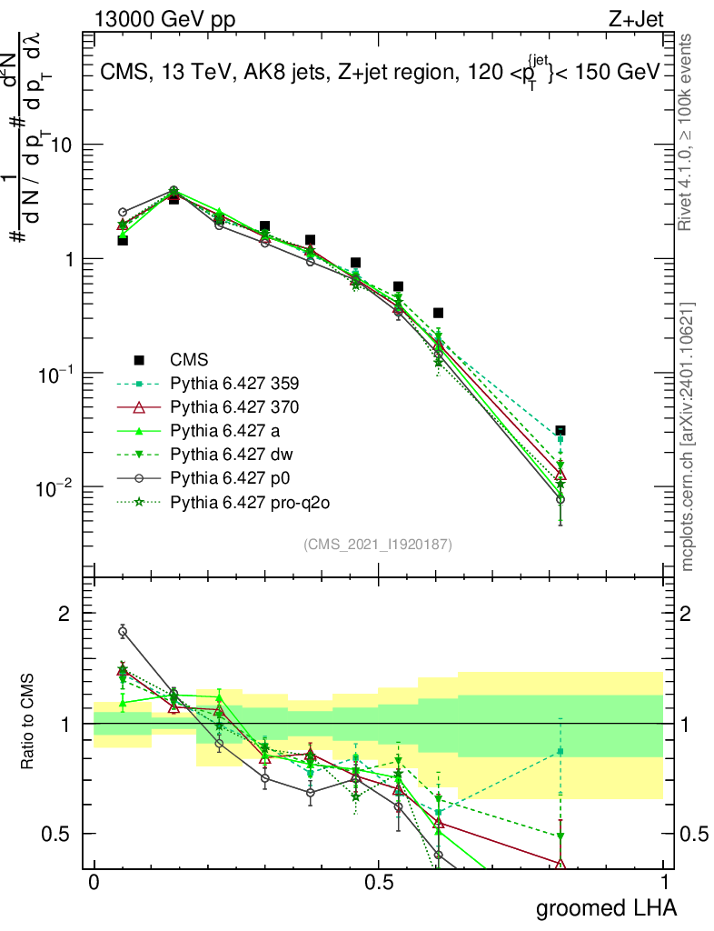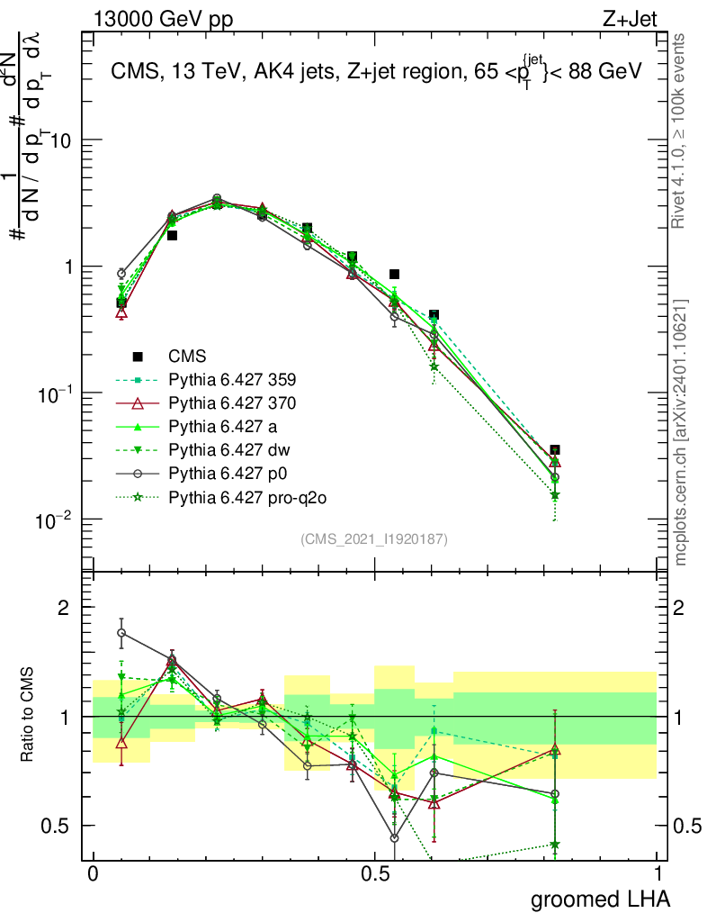 Z+Jet : Generalized angularities : Groomed LHA λ