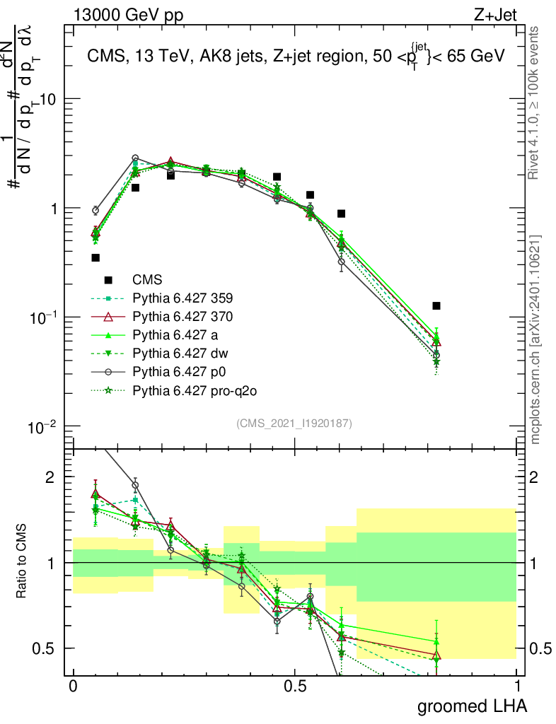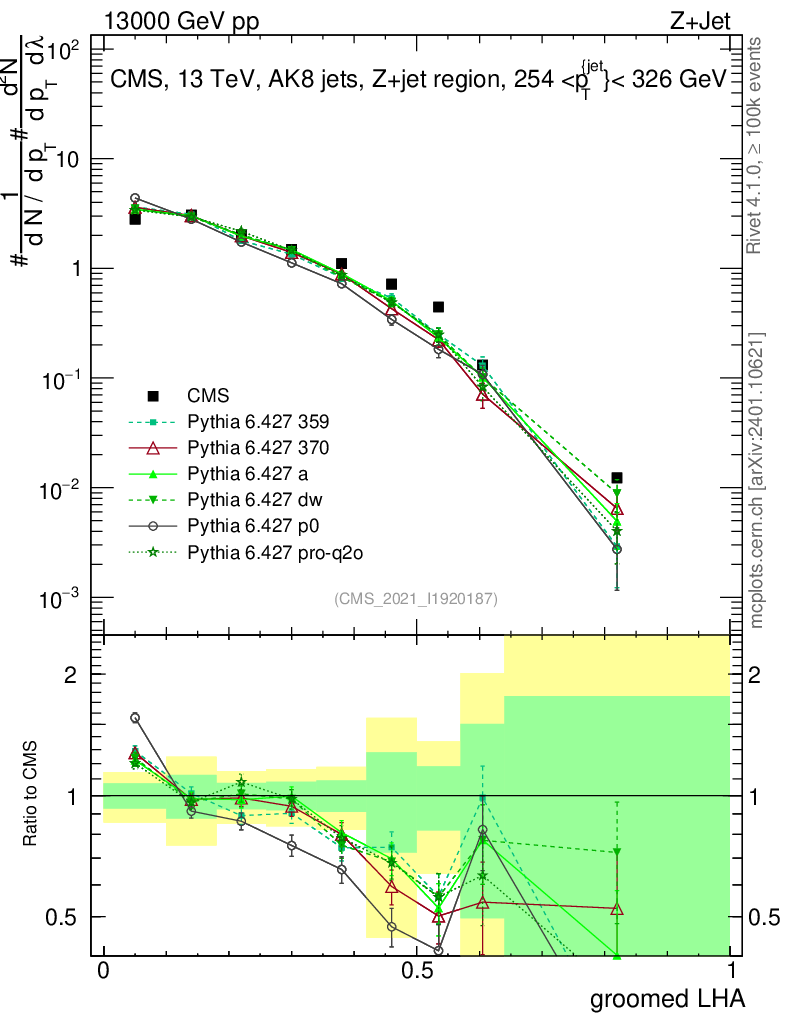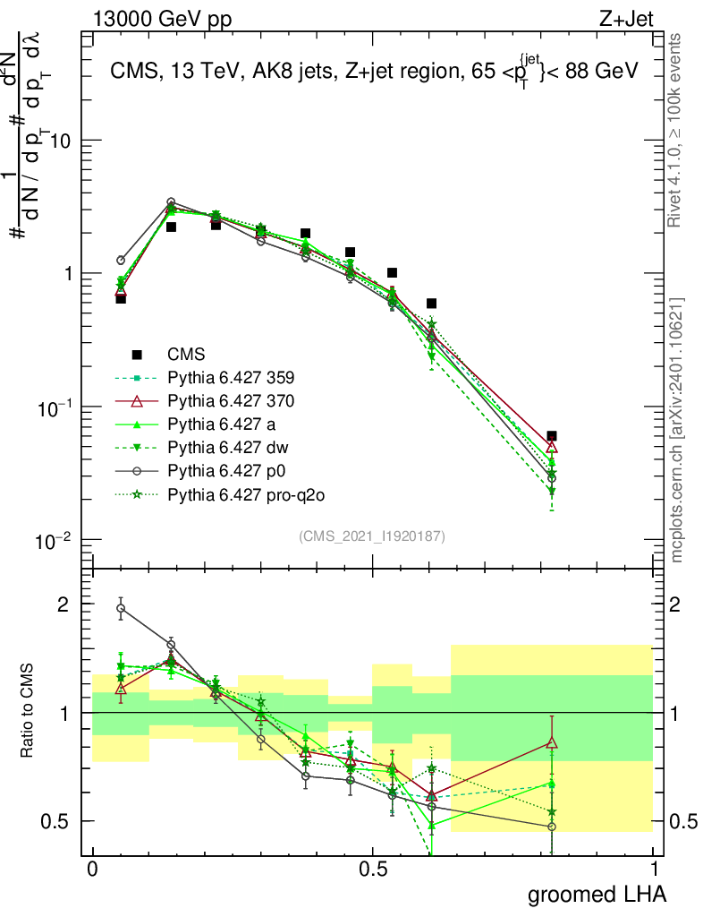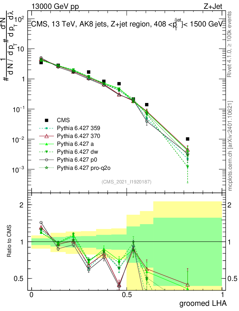 Z+Jet : Generalized angularities : Groomed LHA λ