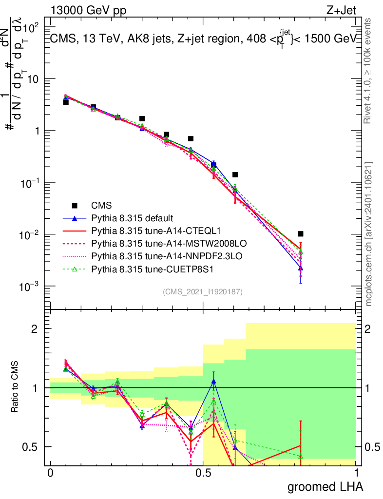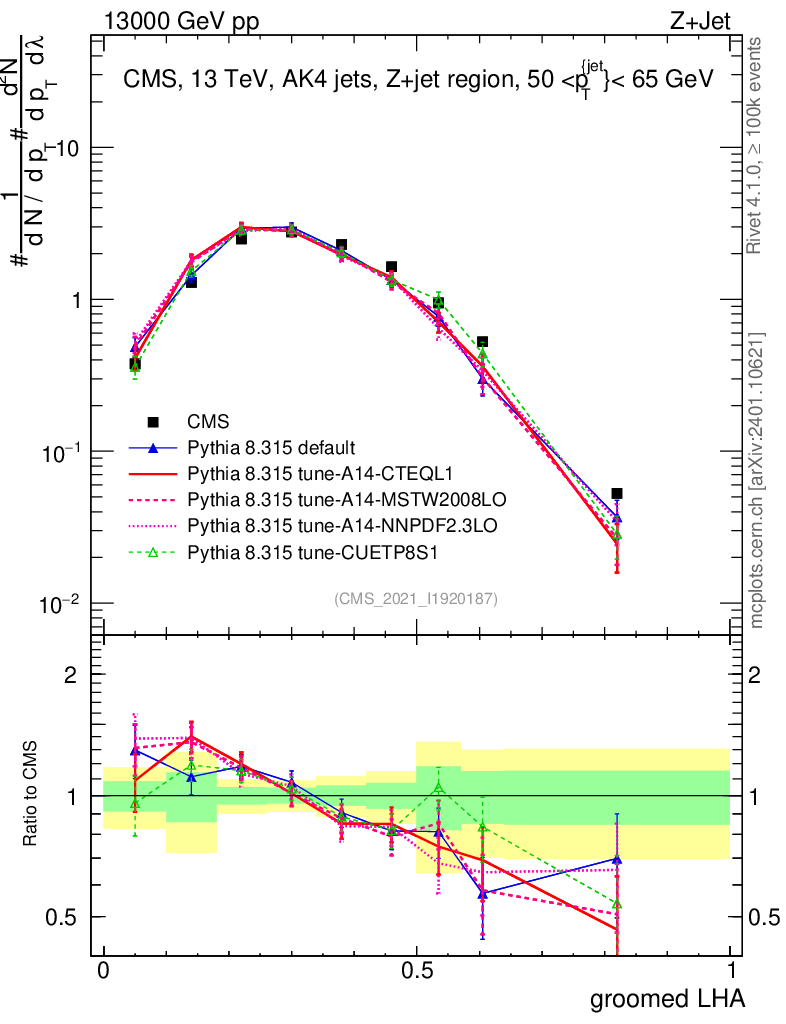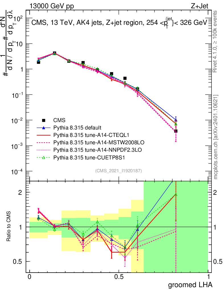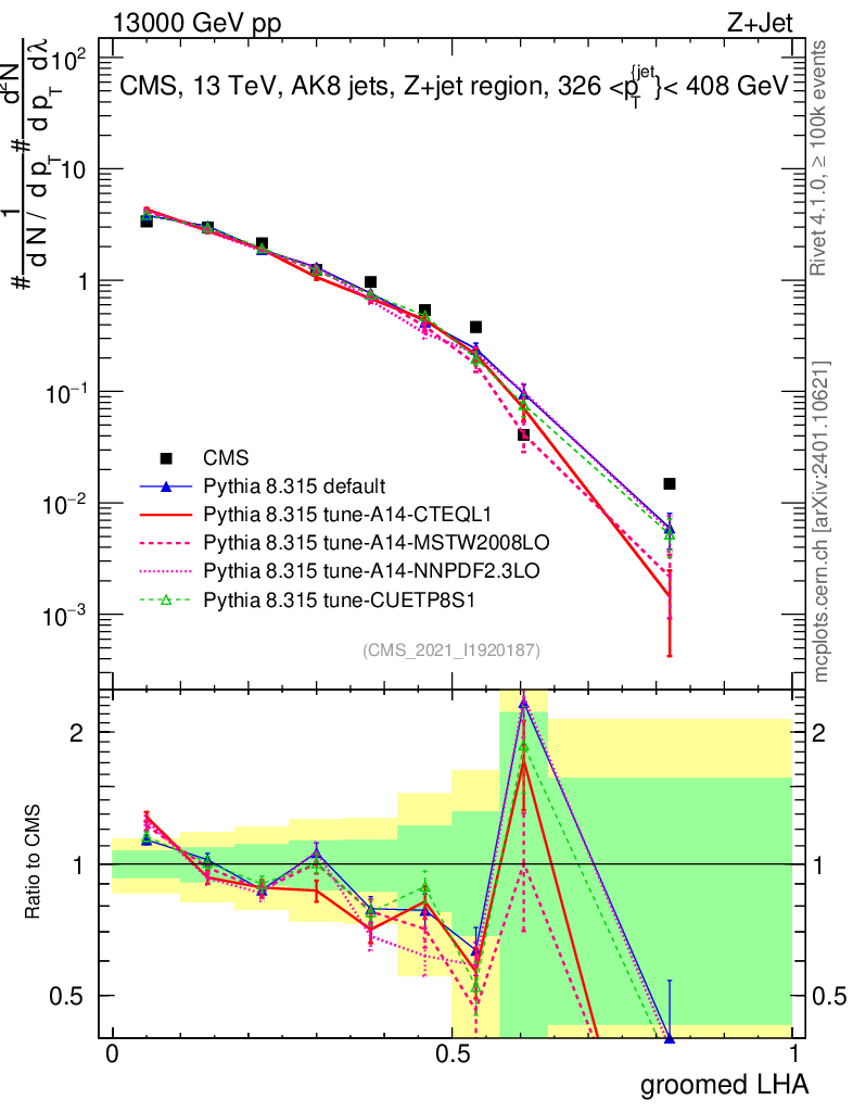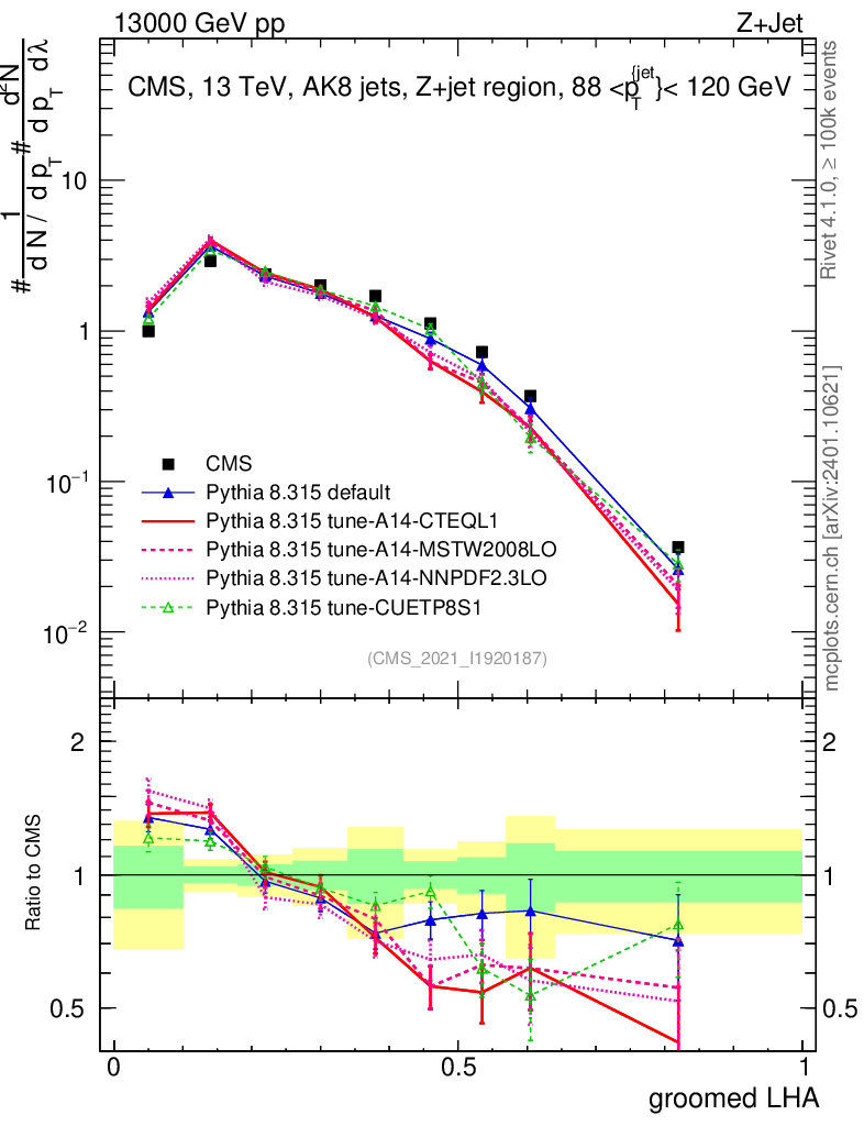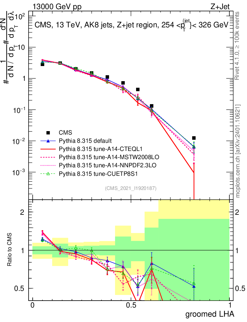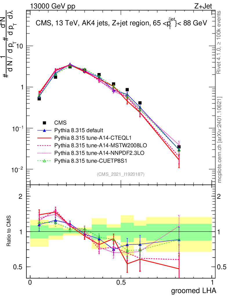 Z+Jet : Generalized angularities : Groomed LHA λ
