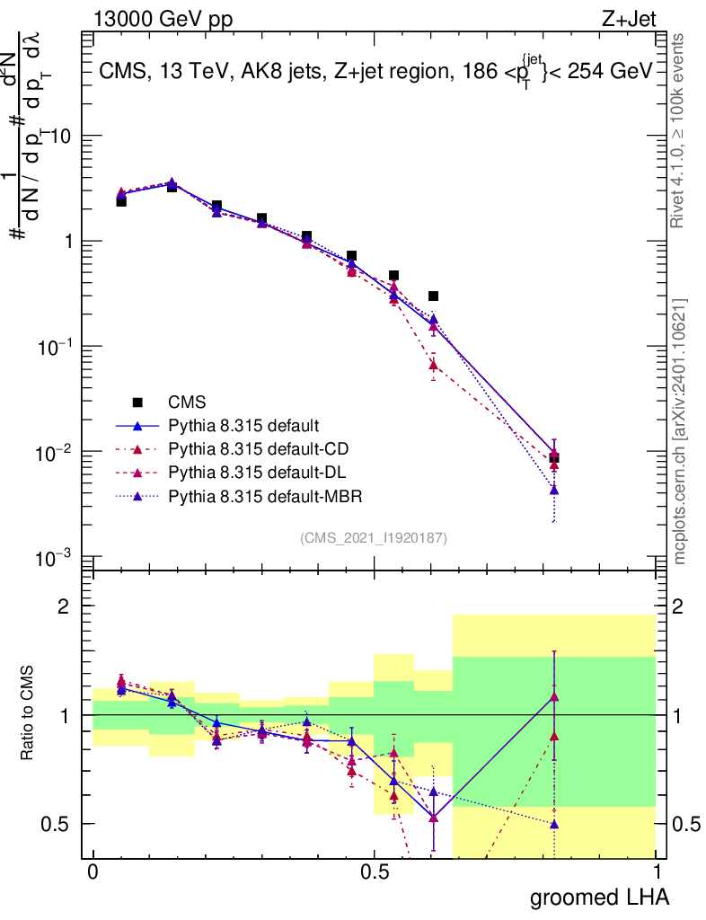 Z+Jet : Generalized angularities : Groomed LHA λ
