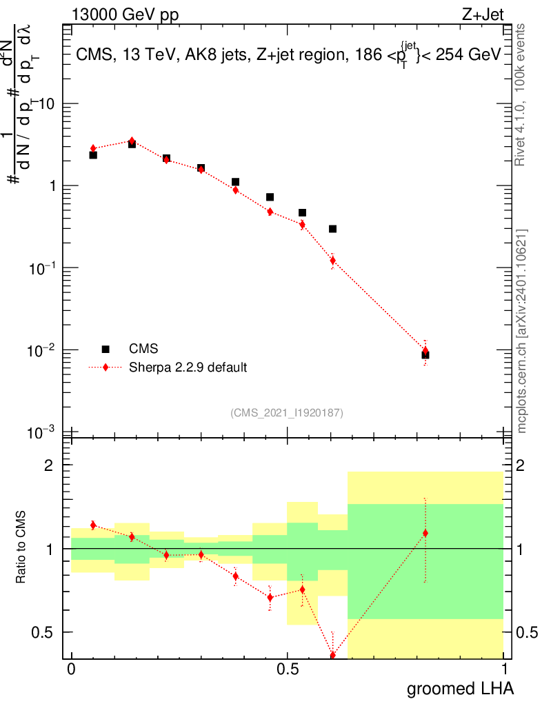 Z+Jet : Generalized angularities : Groomed LHA λ