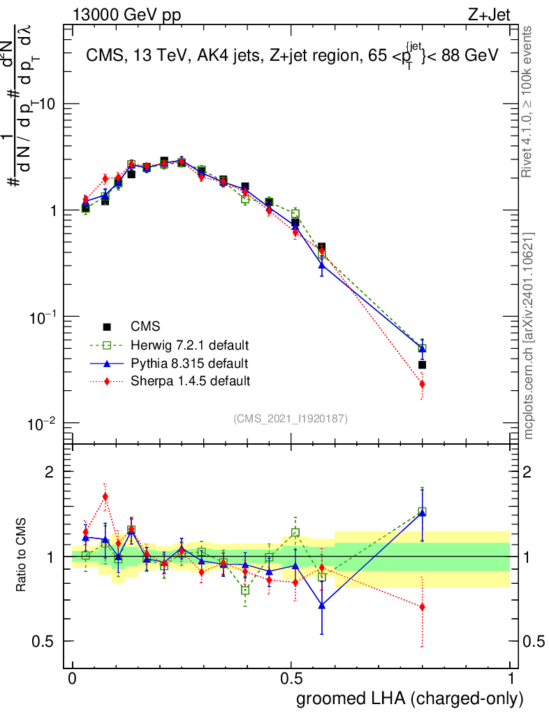 Z+Jet : Generalized angularities : Groomed LHA λ