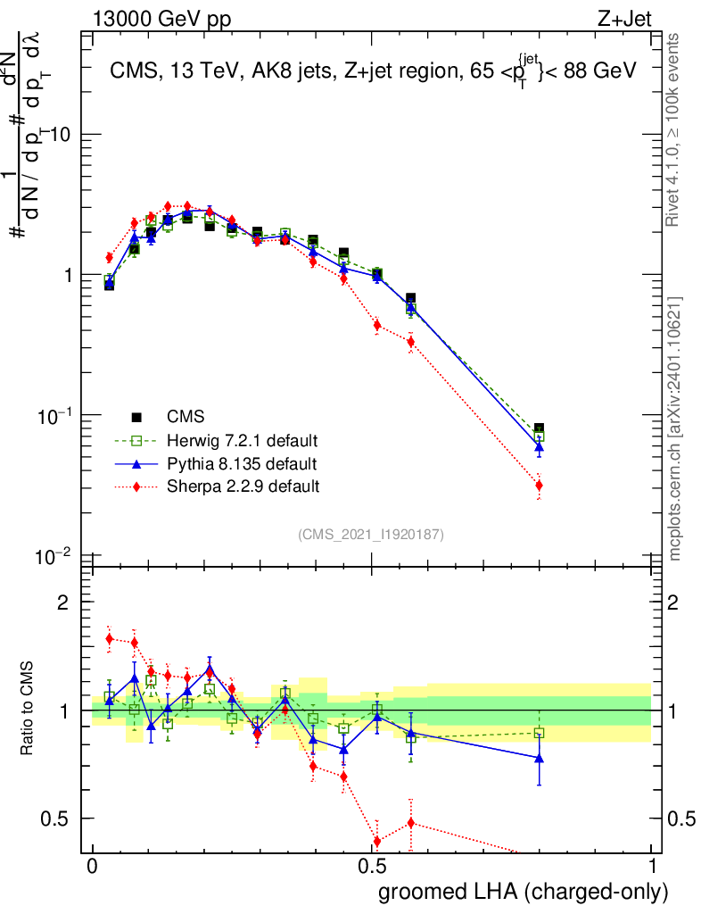 Z+Jet : Generalized angularities : Groomed LHA λ