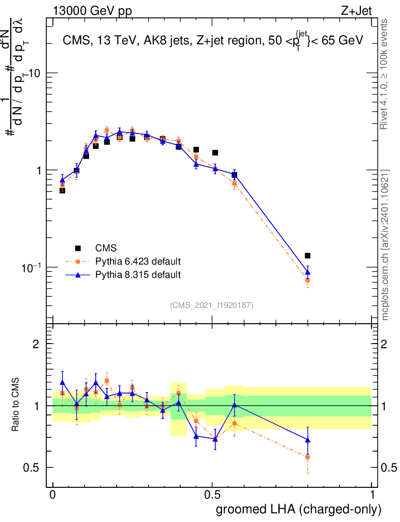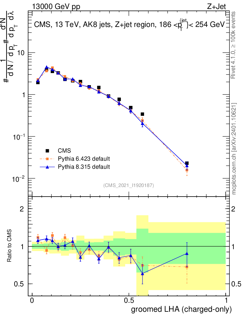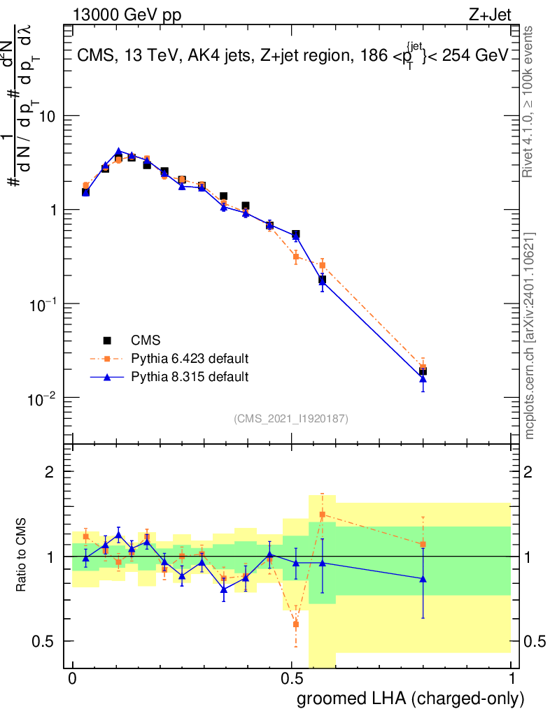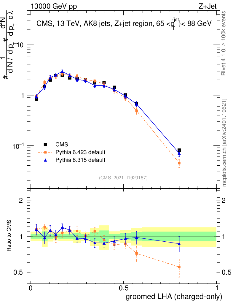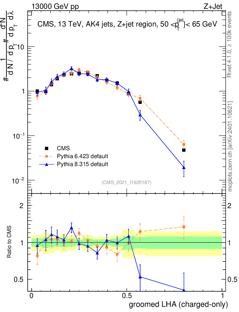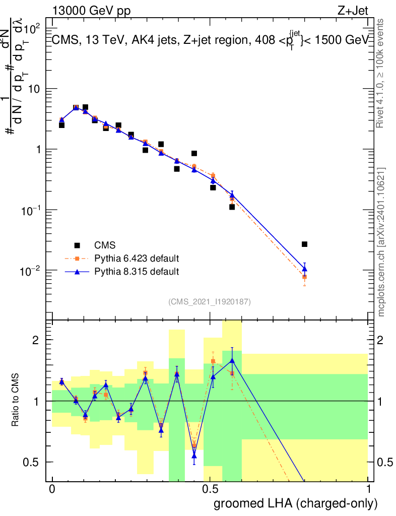 Z+Jet : Generalized angularities : Groomed LHA λ