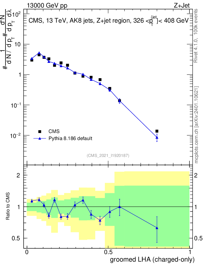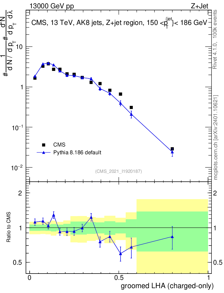 Z+Jet : Generalized angularities : Groomed LHA λ