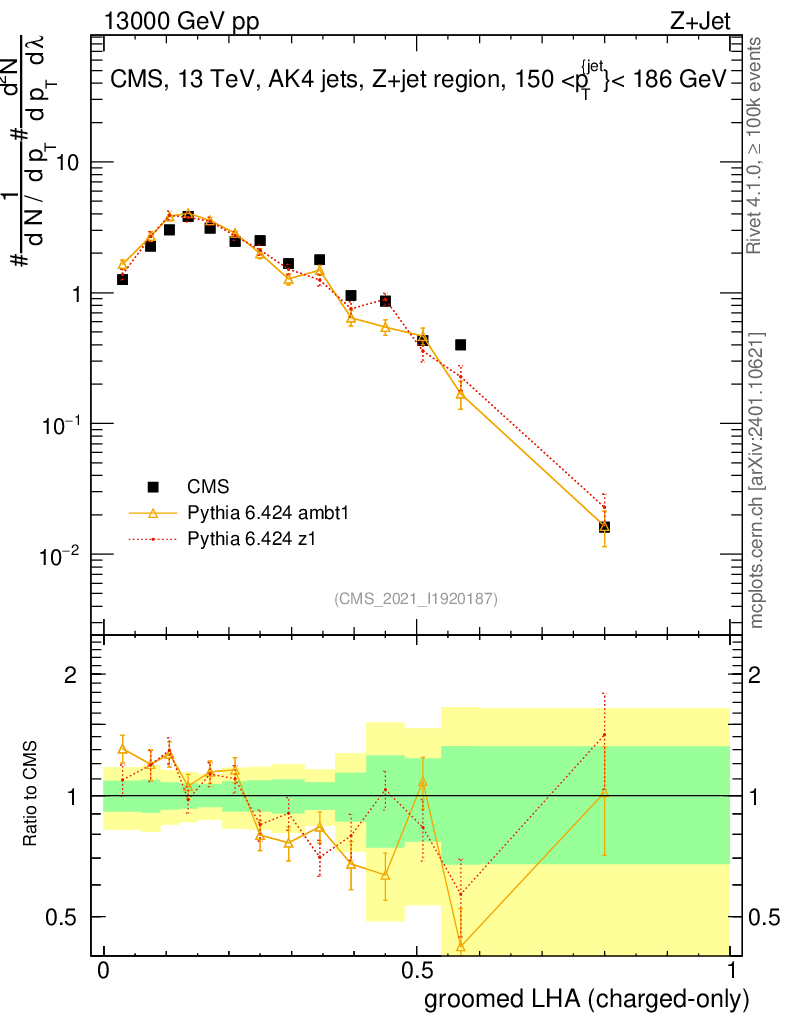 Z+Jet : Generalized angularities : Groomed LHA λ