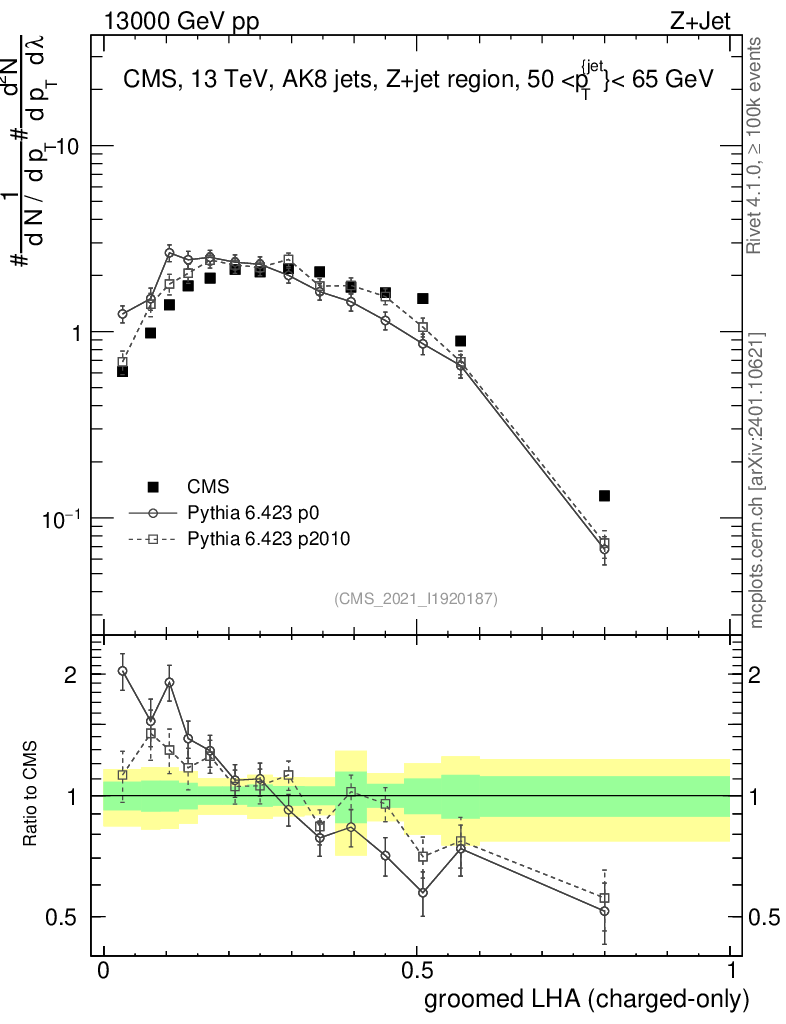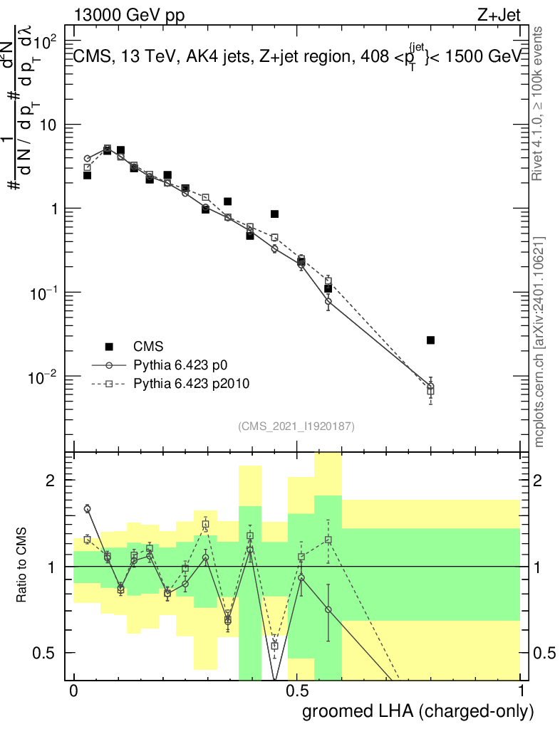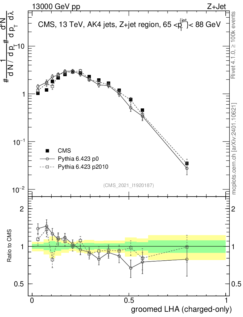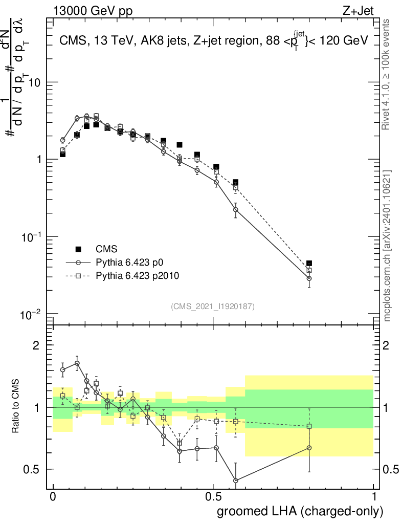 Z+Jet : Generalized angularities : Groomed LHA λ