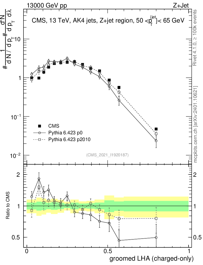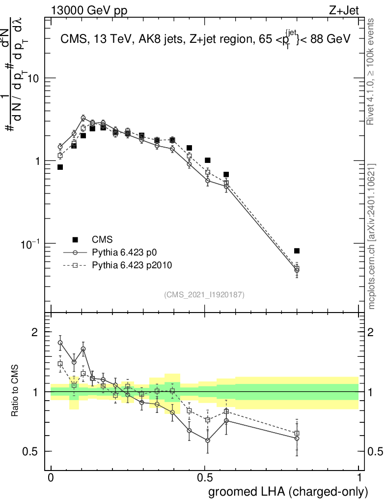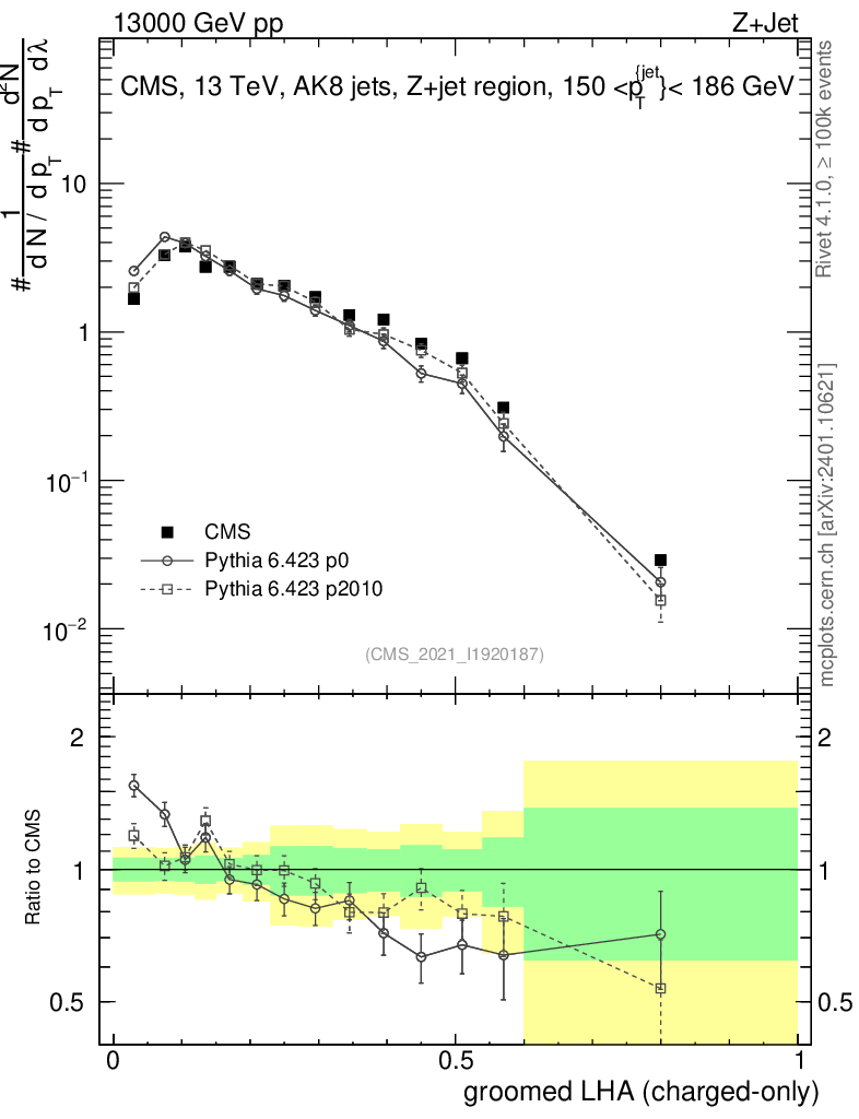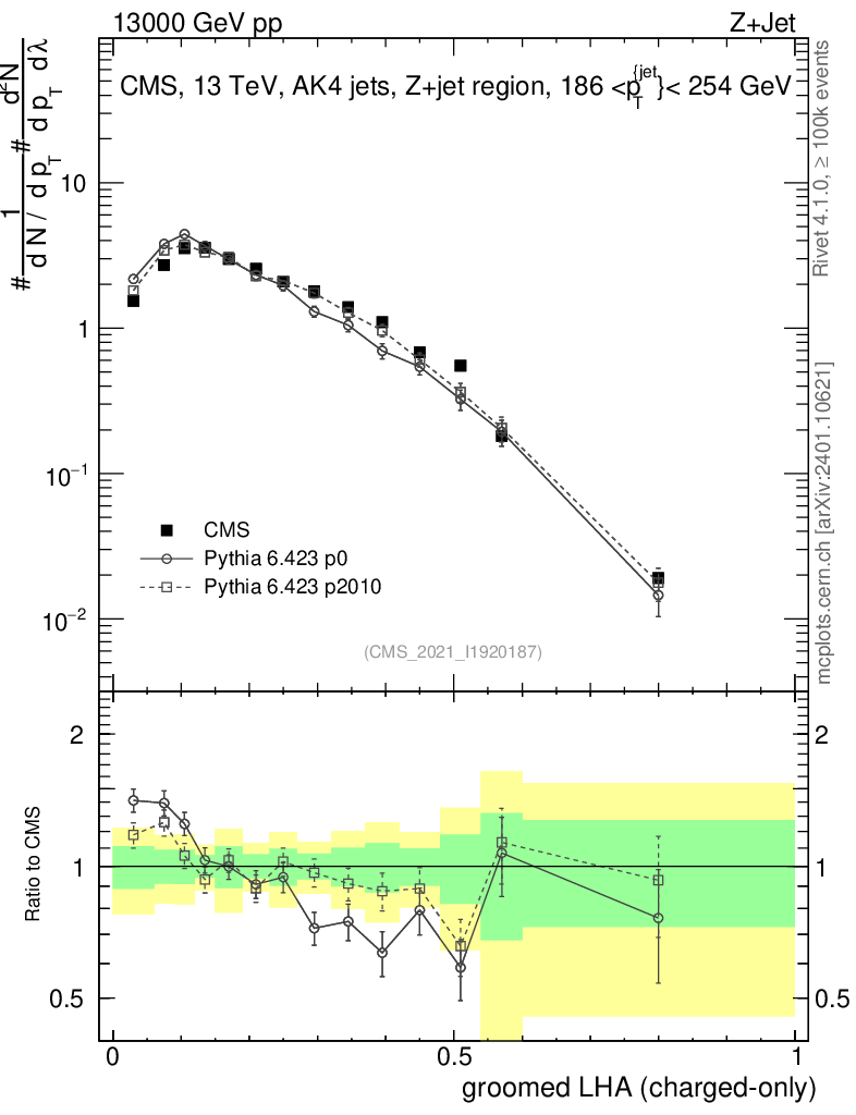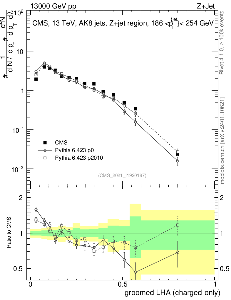 Z+Jet : Generalized angularities : Groomed LHA λ