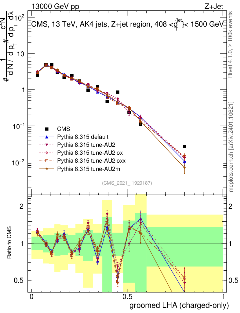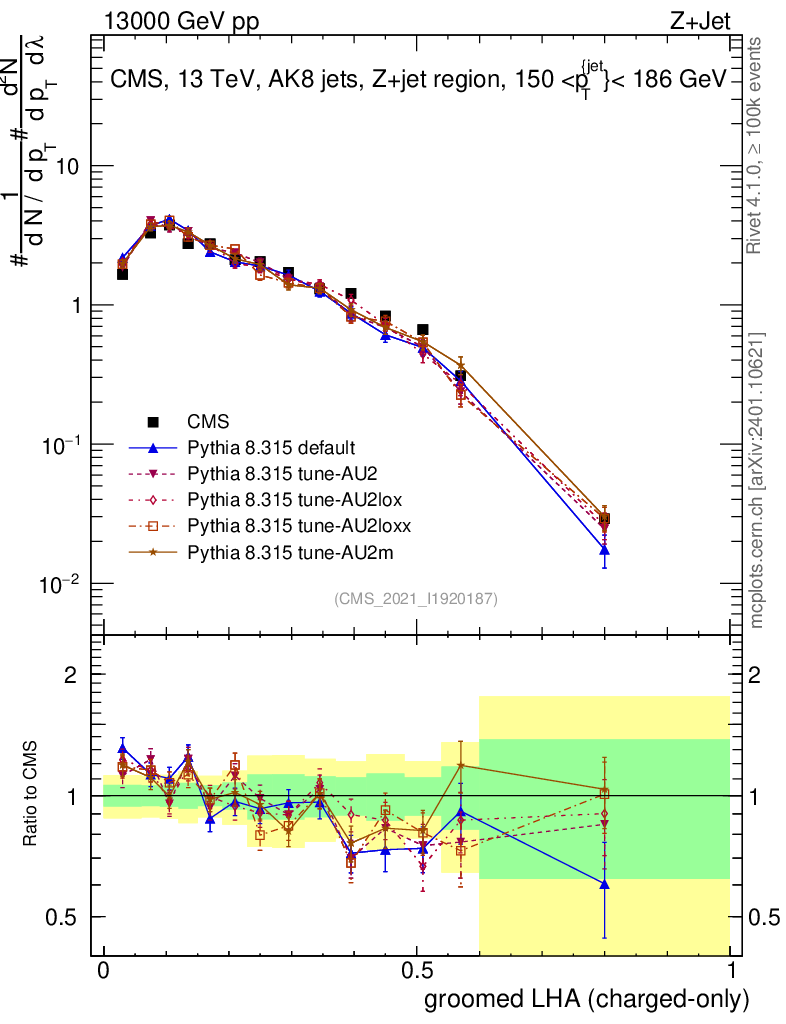 Z+Jet : Generalized angularities : Groomed LHA λ