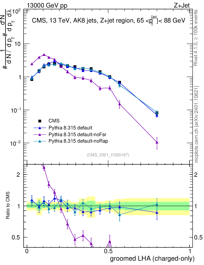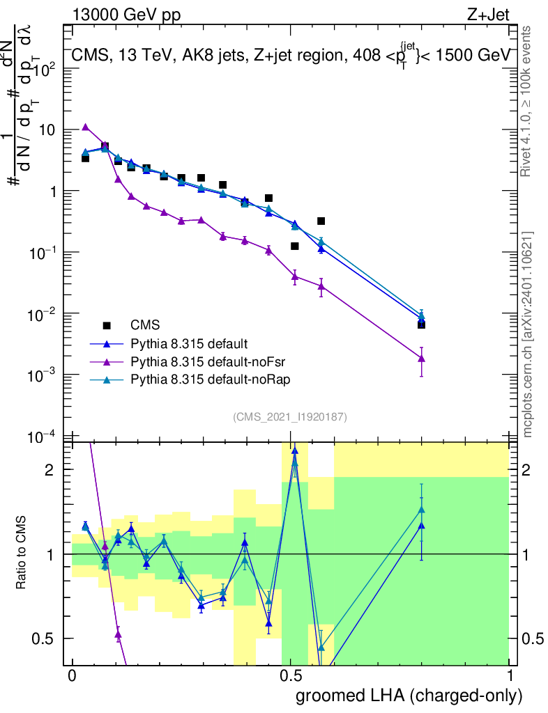 Z+Jet : Generalized angularities : Groomed LHA λ