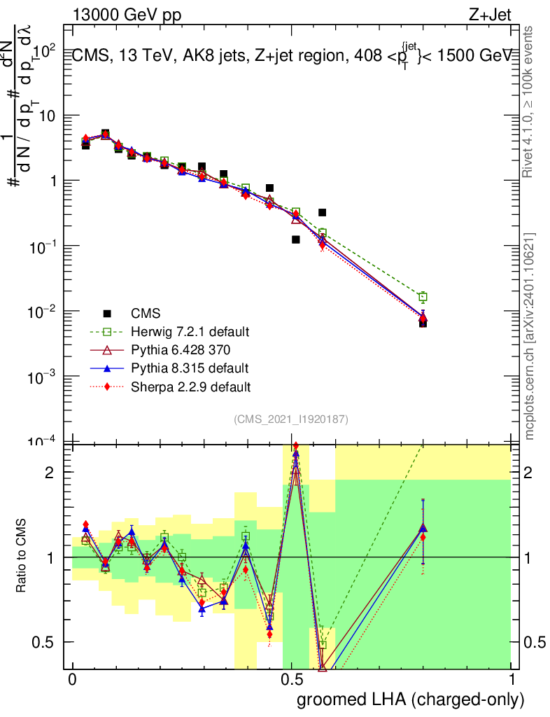Z+Jet : Generalized angularities : Groomed LHA λ
