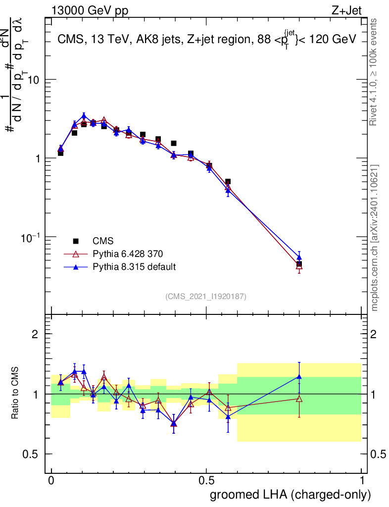 Z+Jet : Generalized angularities : Groomed LHA λ